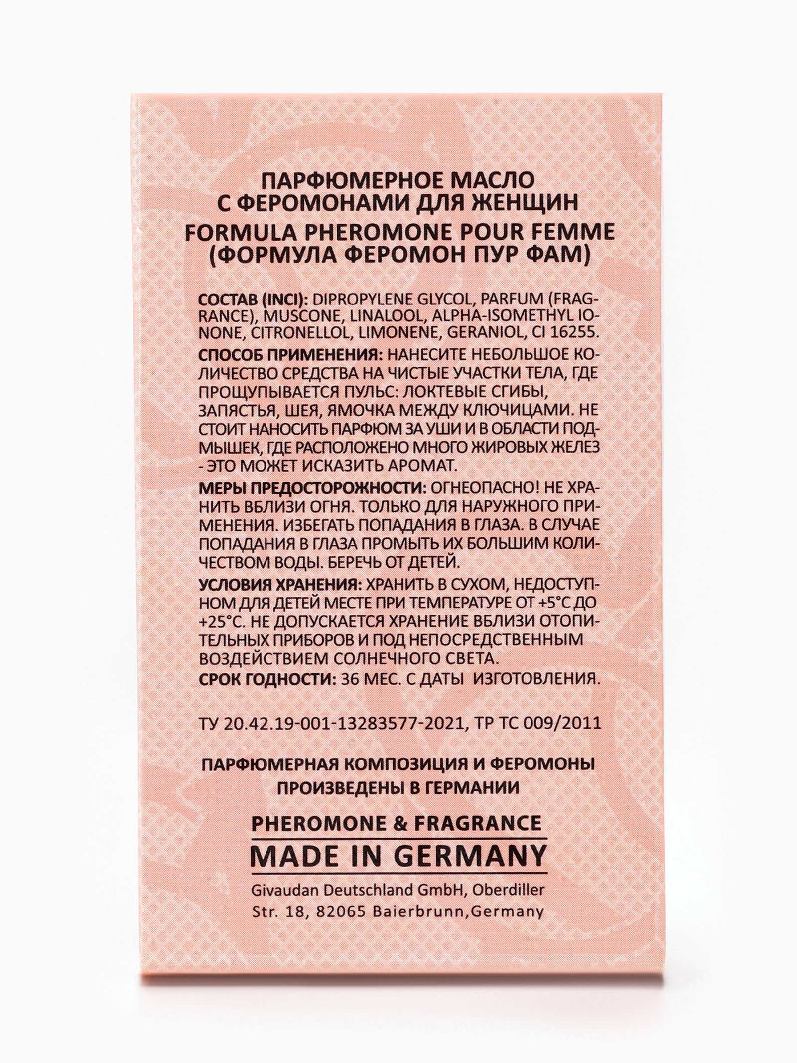 Парфюмерное масло женское с феромонами Formula Pheromone Pour Femme, 15 мл, 15 мл., Formula Sexy, Россия
