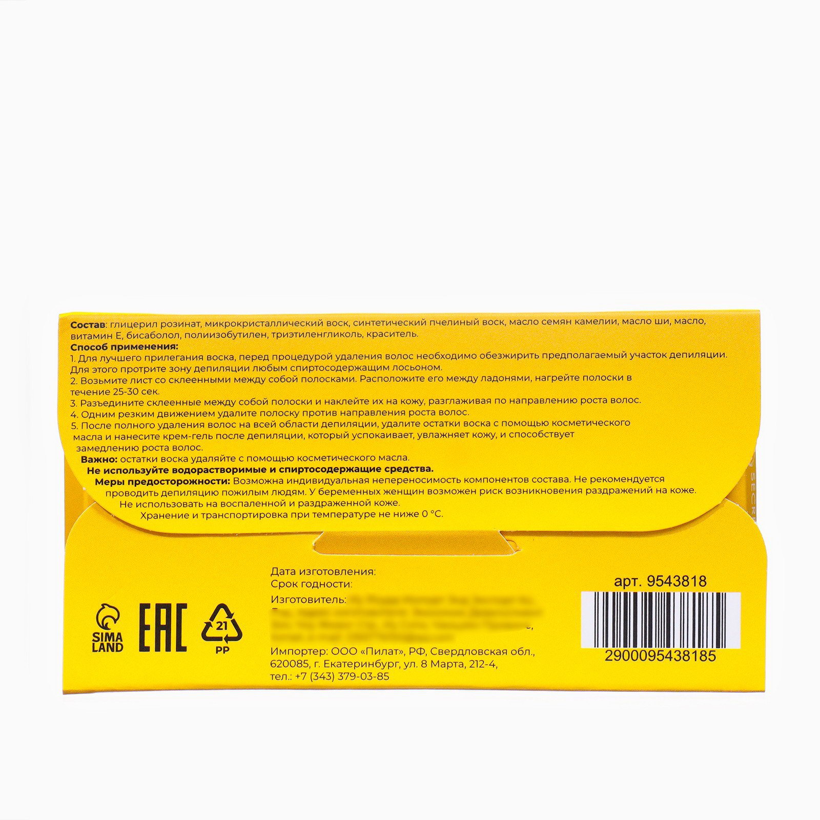 Размер упаковки: 6 x 1 x 11 см. tnved: 3307900000 В упаковке, шт.: 20 Область применения: Для лица Область применения: Для лица Восковые полоски с экстрактом ромашки идеально подходят для быстрого и эффективного удаления нежелательных волосков на лице. Они просты в использовании и сделают кожу гладкой надолго. Воск создан на основе натуральных смол хвойных дереьев, что позволяет максимально эффективно удалять волоски разной длины, включая самые короткие. Благодаря экстрату ромашки и витамину Е, кожа будет мягкой и увлажненной. Специальная ткань лишена эластичности, что дает возможность делать короткое резкое движение при отрыве полоски, предотвращая болезненные ощущения. Проведите тест на чувствительность: используйте полоску на небольшом участке предполагаемом для депиляци. Если в течение 24 часов не появилось никакой негативной реакции, полоски можно использовать. Состав: глицерил розинат, микрокристаллический воск, синтетический пчелиный воск, масло семян камелии, масло ши, масло ромашки, витамин Е, бисаболол, полиизобутилен, триэтиленгликоль, краситель. Способ применения: