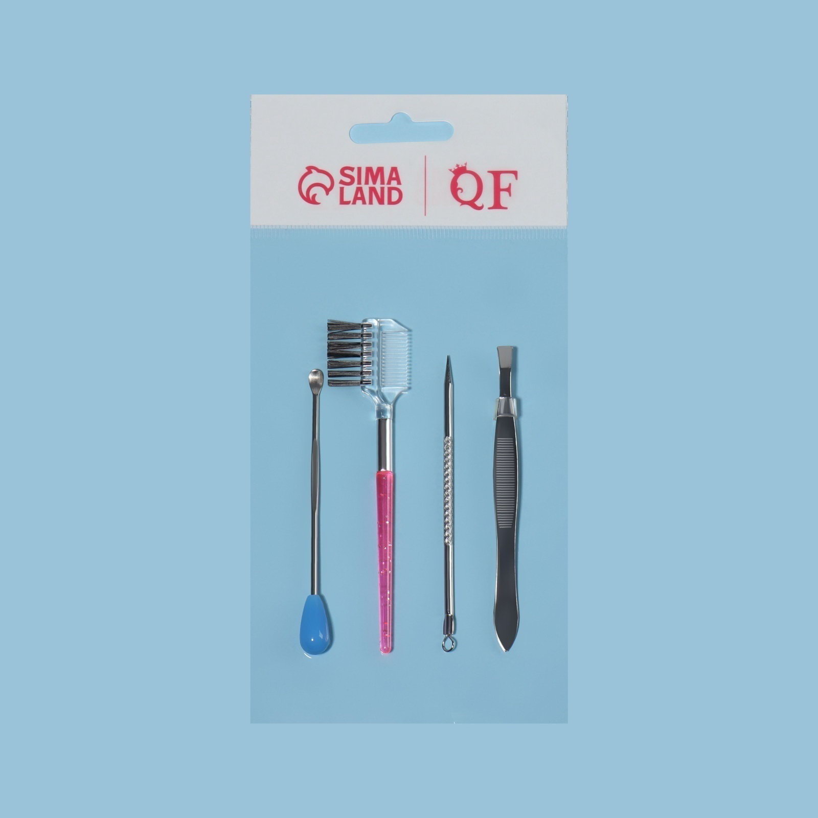 Набор косметологический, 4 предмета, серебристый, 3.5x9.2x0.6 см., QF, Китай
