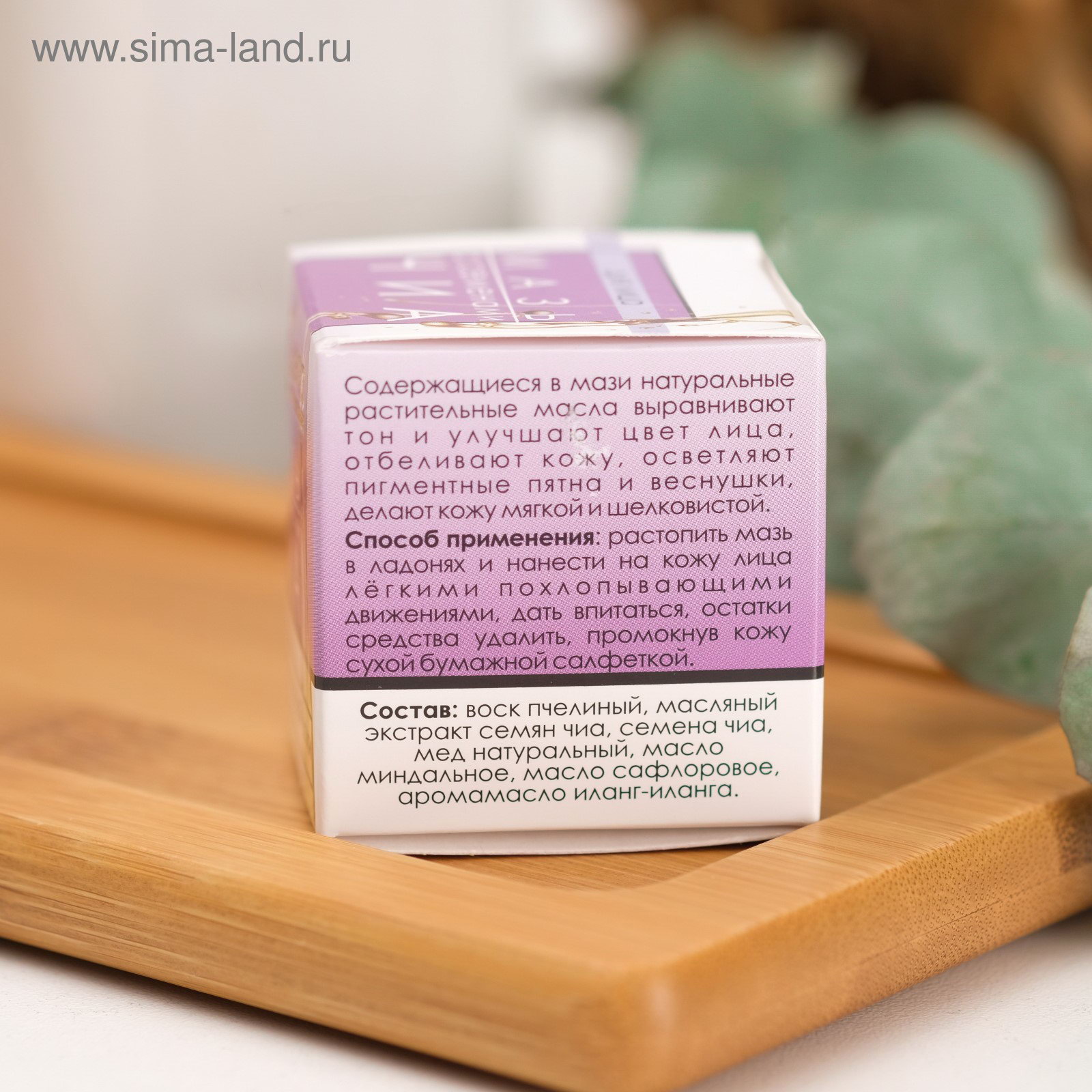 Размер упаковки: 4.6 x 4.6 x 4.6 см. Размер упаковки: 4.6 x 4.6 x 4.6 см. tnved: 3304990000 Температурное ограничение: Нет Тип кожи: Сухая Вид: Мазь Вес, г/Объём, мл: 28 Область применения: Для лица Применение: Универсальный Возраст: Для всех возрастов Мазь с семенами чиа - великолепное средство для ухода за кожей лица! Входящее в ее состав масло семян чиа бережно увлажняет сухую, чувствительную кожу, способствует уменьшению воспалений, отлично устраняет шелушения и зуд, запускает процессы регенерации и омоложения, разглаживает мелкие морщинки и неровности кожи, предупреждает ее раннее старение. Назначение: как мазь при сухой и повреждённой коже, при появлении мелких морщин, при увядающей и тусклой коже. Содержащиеся в мази натуральные растительные масла выравнивают тон и улучшают цвет лица, отбеливают кожу, осветляют пигментные пятна и веснушки, делают кожу мягкой и шелковистой. Способ применения: растопить мазь в ладонях и нанести на кожу лица лёгкими похлопывающими движениями, дать впитаться, остатки средства удалить, промокнув кожу сухой бумажной салфеткой. Состав: воск пчелиный, масляный экстракт семян чиа, семена чиа, мед натуральный, масло миндальное, масло сафлоровое, аромамасло иланг-иланга. | ||