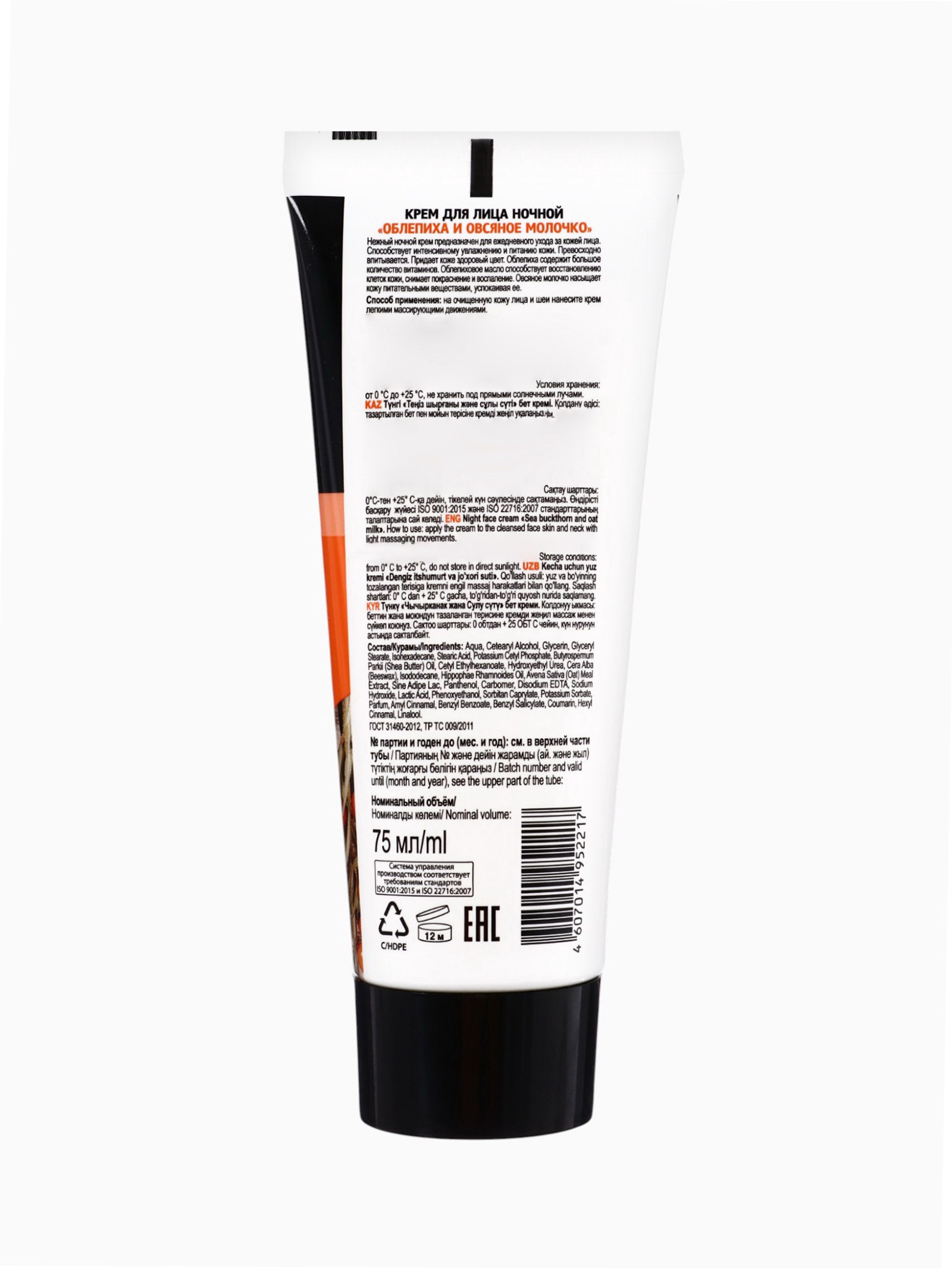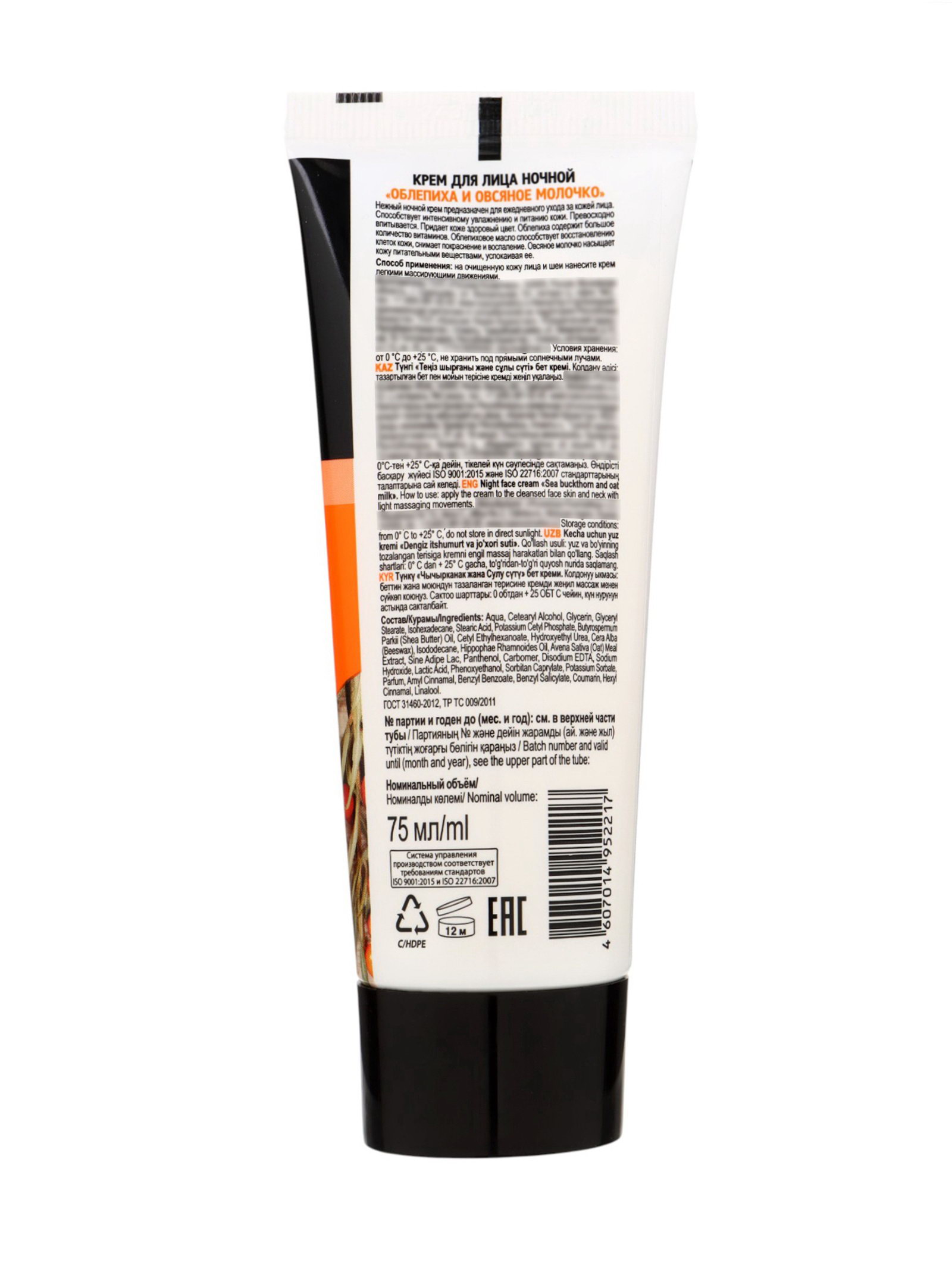 Крем для лица ночь облепиха и овсяное молочко, 75 мл, Особая серия, Россия
