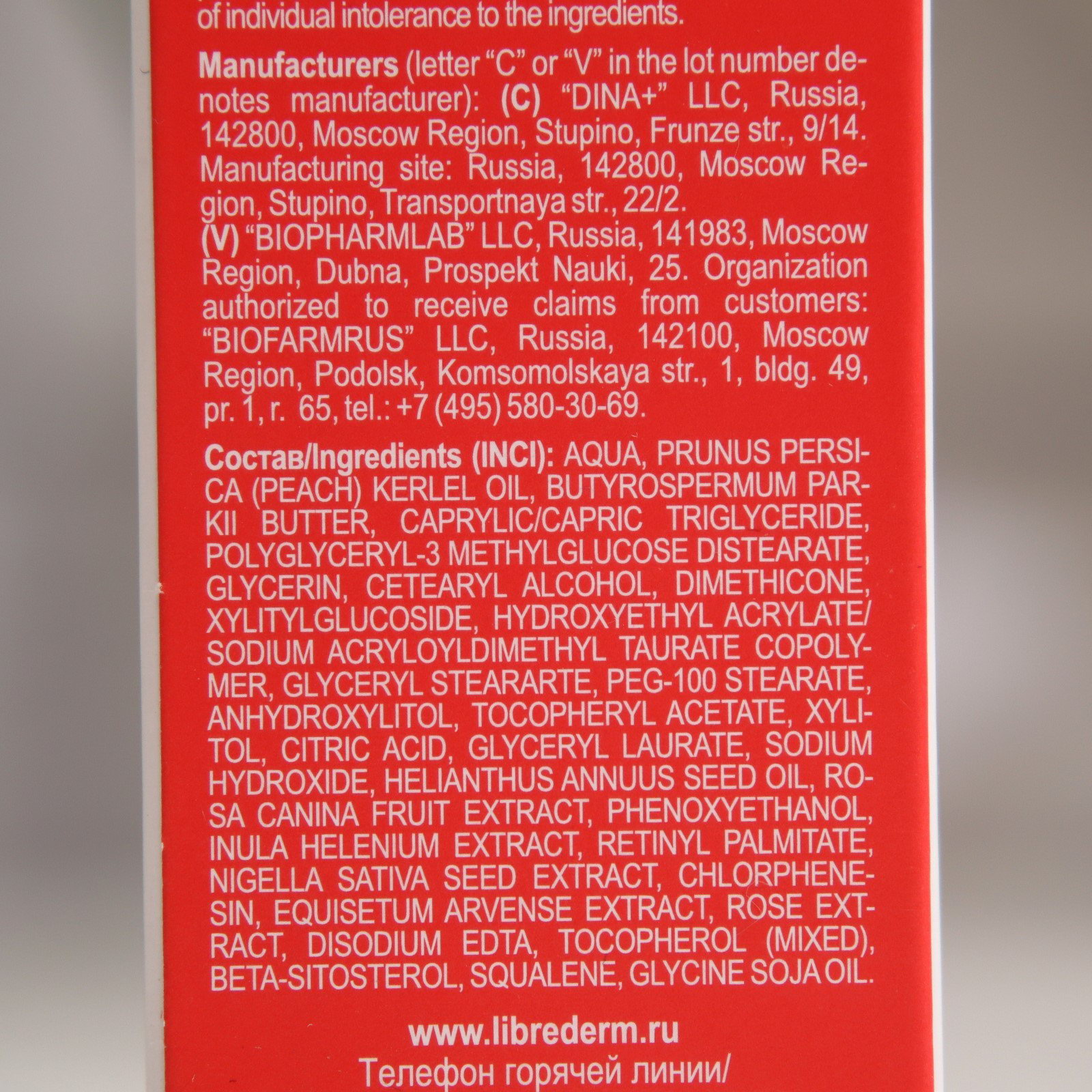 Размер упаковки: 4 x 13.5 x 3.5 см. Область применения: Для лица Тип кожи: Для всех типов Возраст: Для всех возрастов Применение: Универсальный Вес, г/Объём, мл: 50 Вес, г/Объём, мл: 50 tnved: 3304990000 Температурное ограничение: Нет Температурное ограничение: Нет Вид: Крем Крем для лица Librederm Аевит питательный с выраженным антивозрастным действием предназначен для комплексного ухода за кожей лица: глубоко питает кожу, насыщая витаминами, тонизирует и освежает уставшую кожу, замедляет процесс старения клеток. Синергия витаминов А и Е обеспечивает мощное антиоксидантное воздействие, защищает клетки от повреждений и старения, восстанавливает эластичность кожи. Увеличивает выработку собственного коллагена, который необходим в борьбе за молодость кожи. Комплекс высококонцентрированных экстрактов эдельвейса, малины и розмарина наполняют кожу внутренней силой и энергией, оказывают фотозащитное, тонизирующее, регенерирующее действие на кожу. Крем не содержит искусственных отдушек и красителей. Способ применения: небольшое количество крема нанести на очищенную кожу лица и шеи по массажным линиям. Легкая формула крема позволяет использовать его как утром, так и вечером за 1-1,5 часа до сна. Состав: aqua, propylheptyl caprylate, caprylic/ capric triglyceride, oleyl erucate, polyglyceryl-3 methylglucose distearate, glyceryl stearate, glycerin, cеtearyl alcohol, tocopheryl acetate, leontopodium alpinum extract, rubus idaeus fruit extract, rosmarinus officinalis (rosemary) leaf extract, phenoxyethanol, ethylhexylglycerin, retinyl palmitate, tocopherol (mixed), betasitosterol, squalene, glyceryl linolenate. | ||