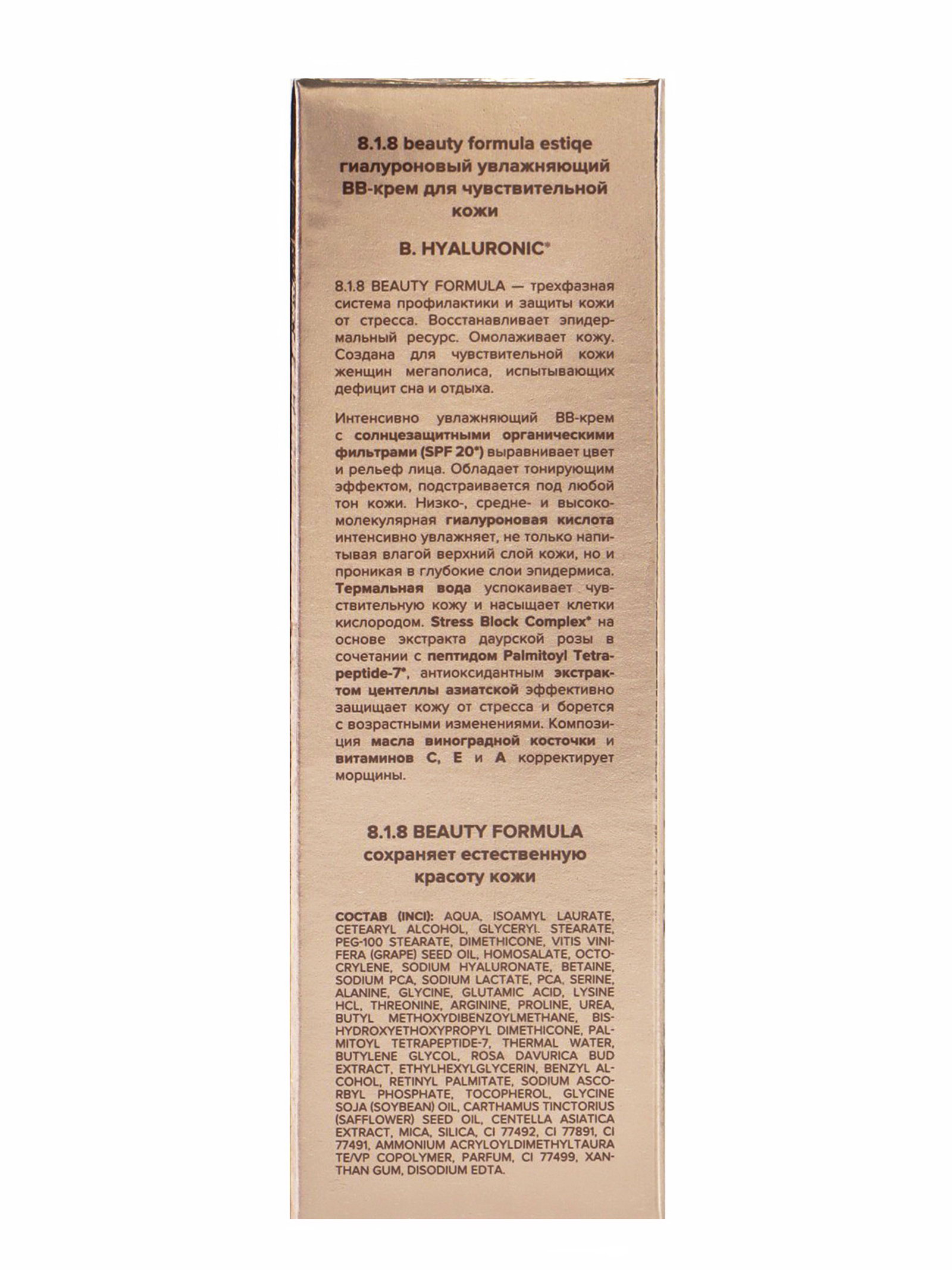Крем-BB 818 beauty formula гиалуроновый, для чувствительной кожи, увлажняющий, 50 мл, 8.1.8 beauty formula, Россия
