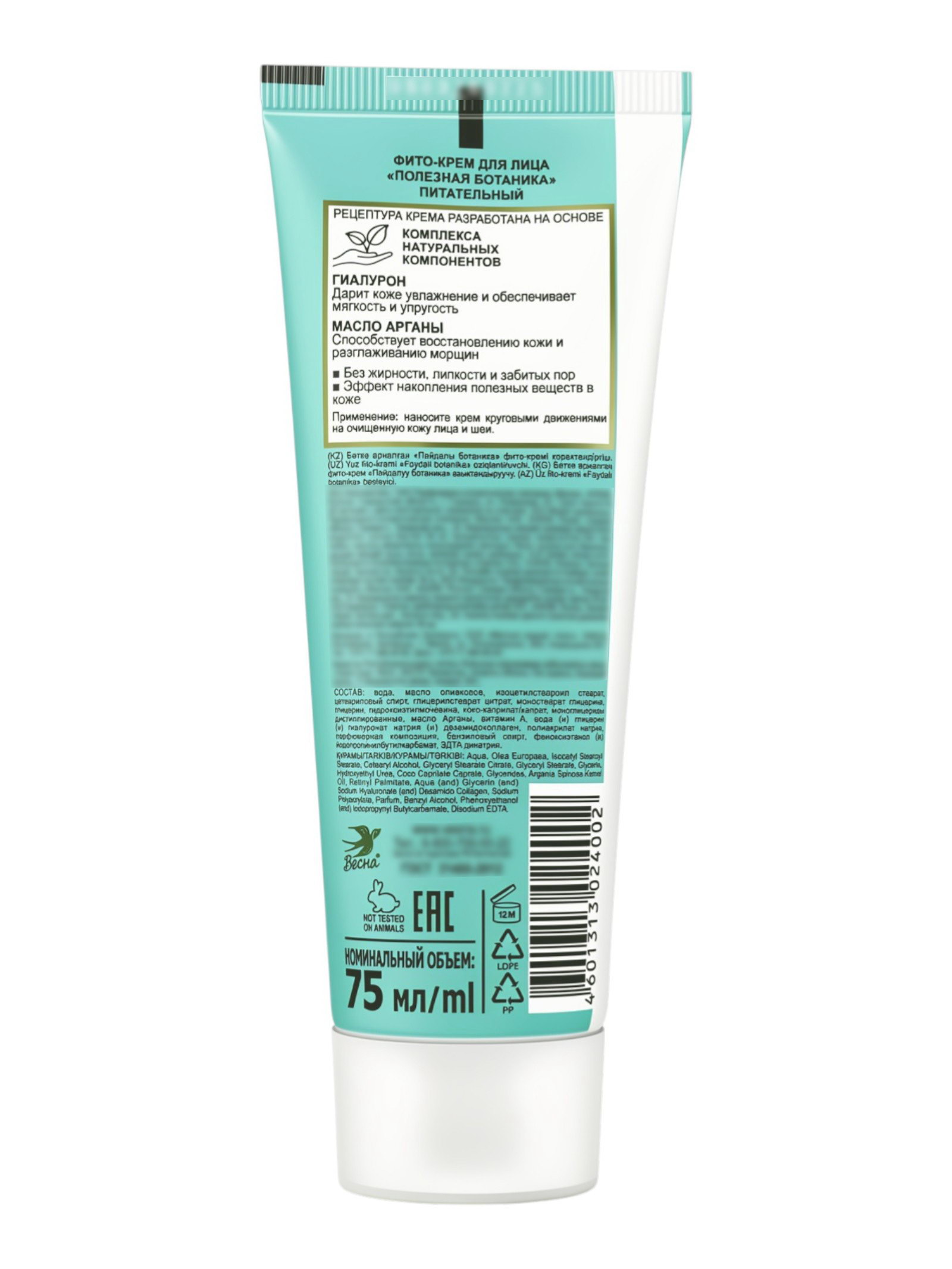 Фито-крем для лица "Полезная ботаника", питательный, туба, 75 мл, Весна, Россия
