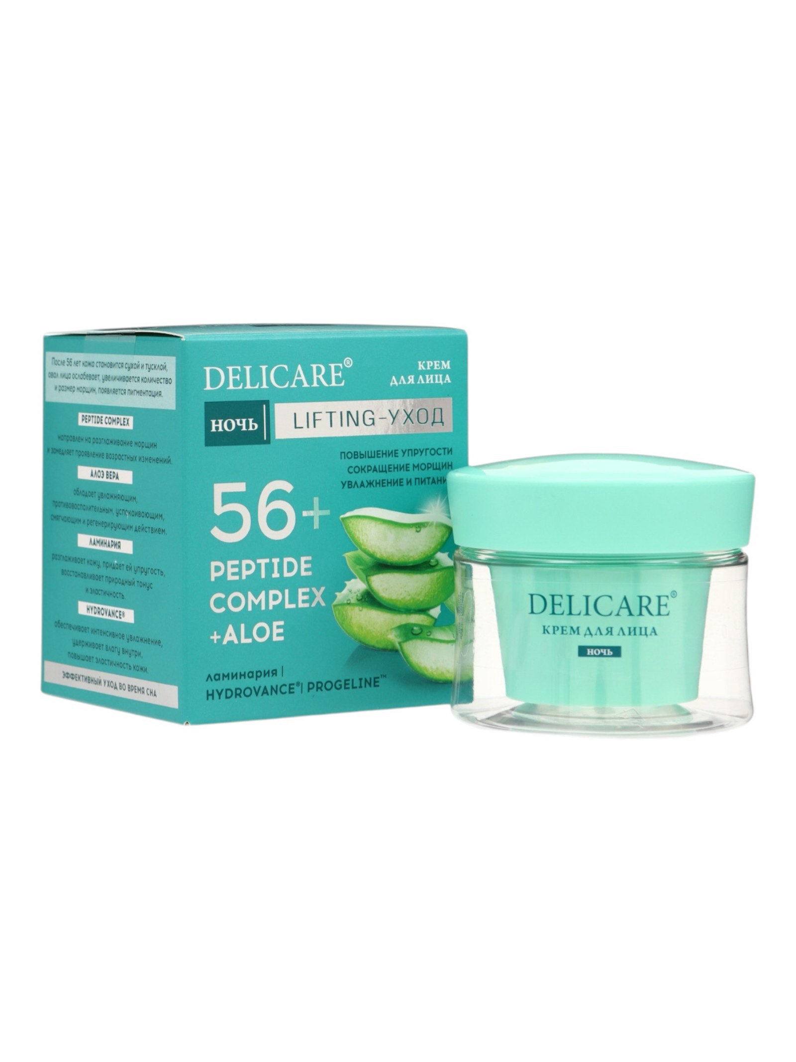 Крем для лица ночной с алоэ вера и пептидами, 56+, 50 мл, Delicare, Россия