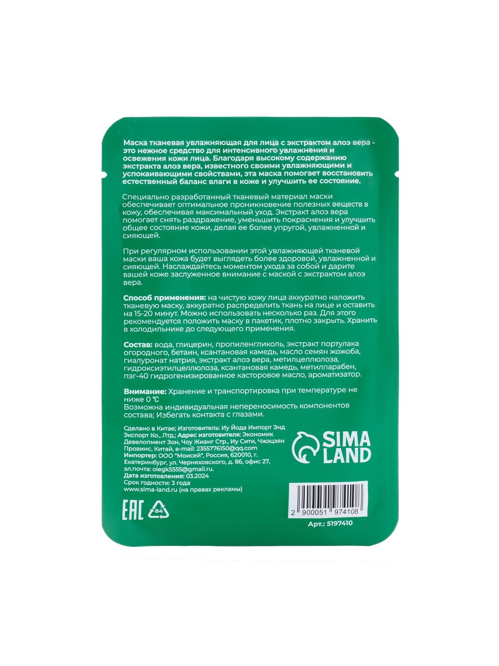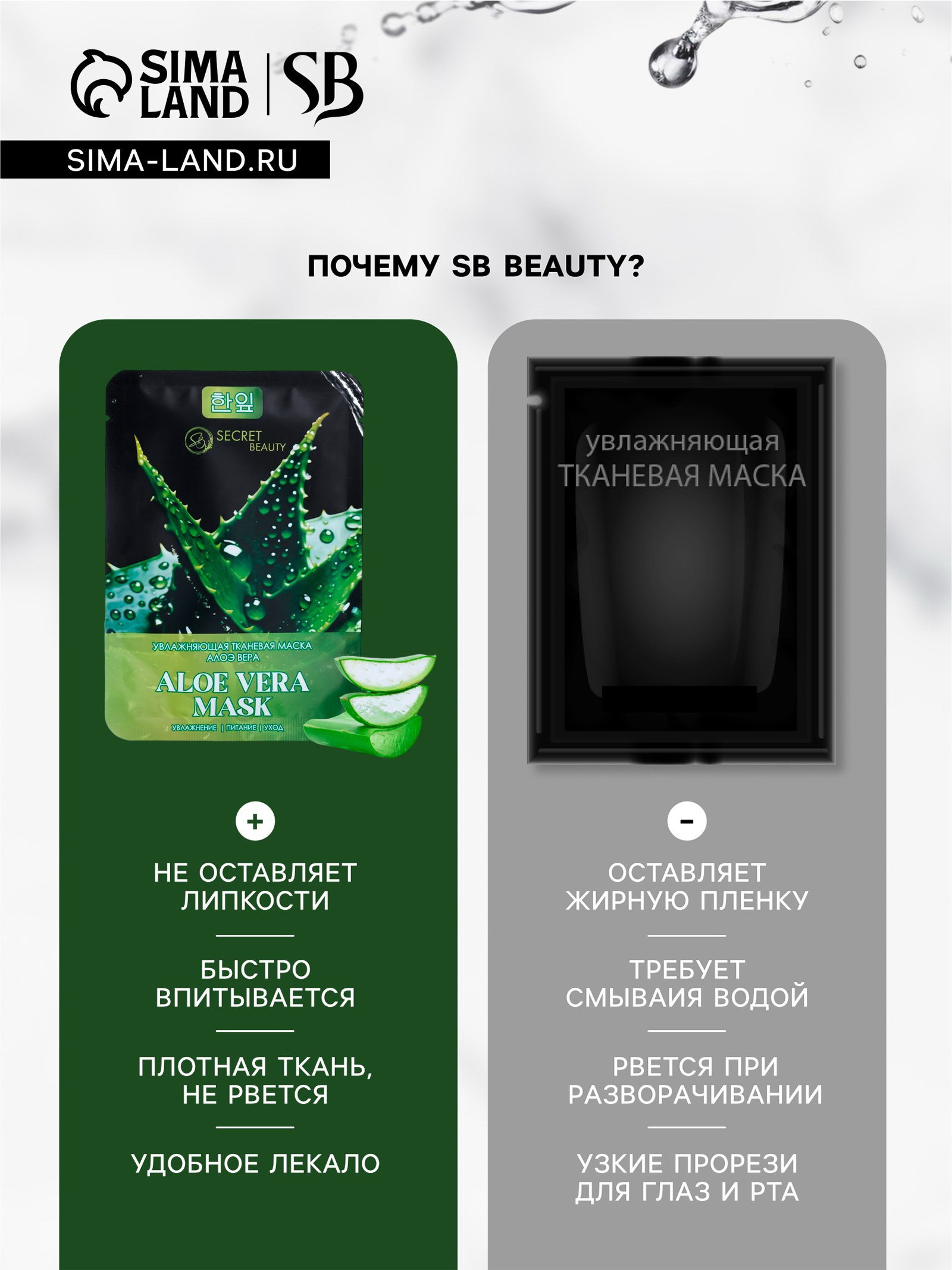 Тканевая маска для лица с экстрактом алоэ вера, увлажняющая, 10x15x0.5 см., SB BEAUTY, Китай