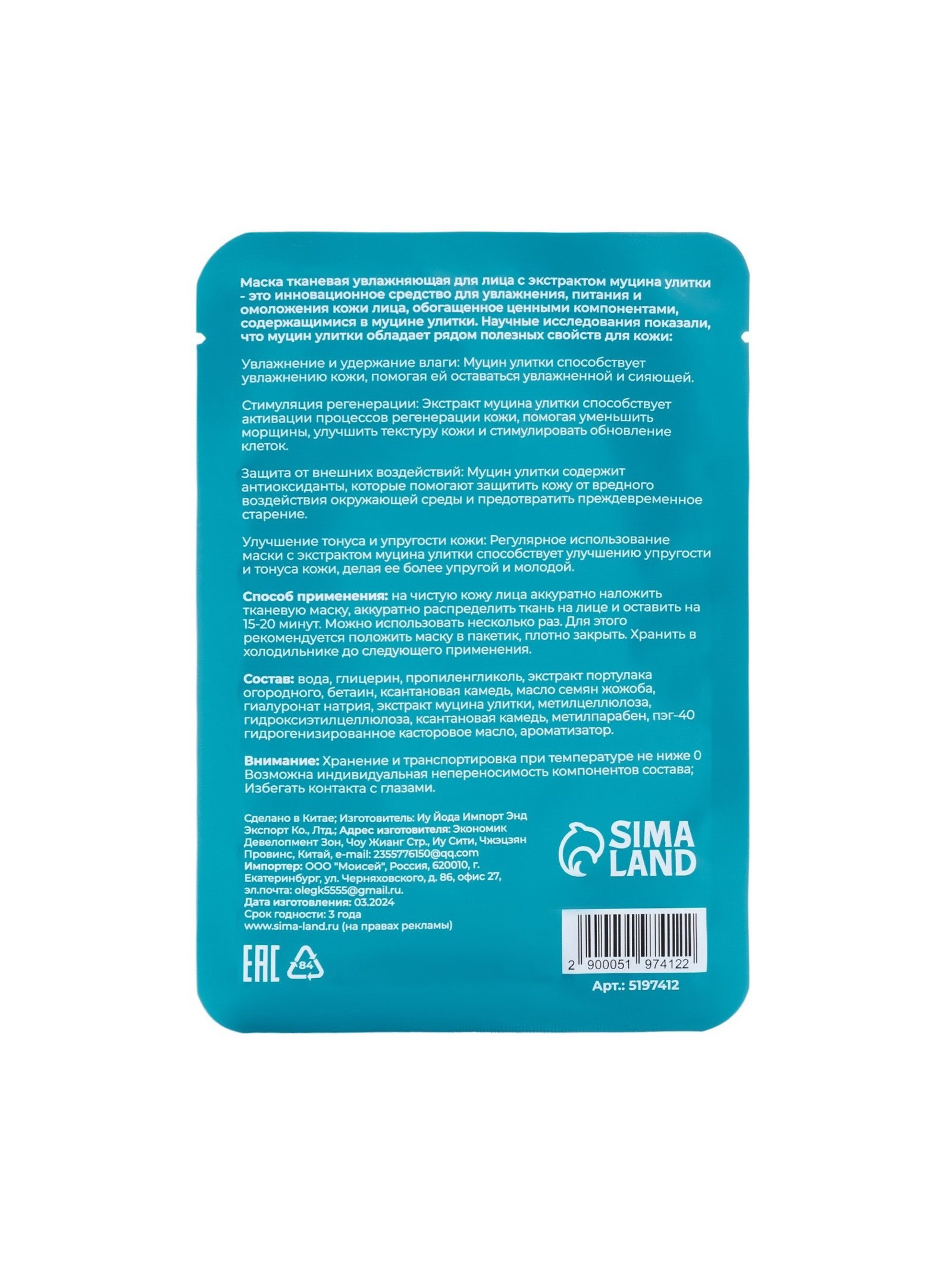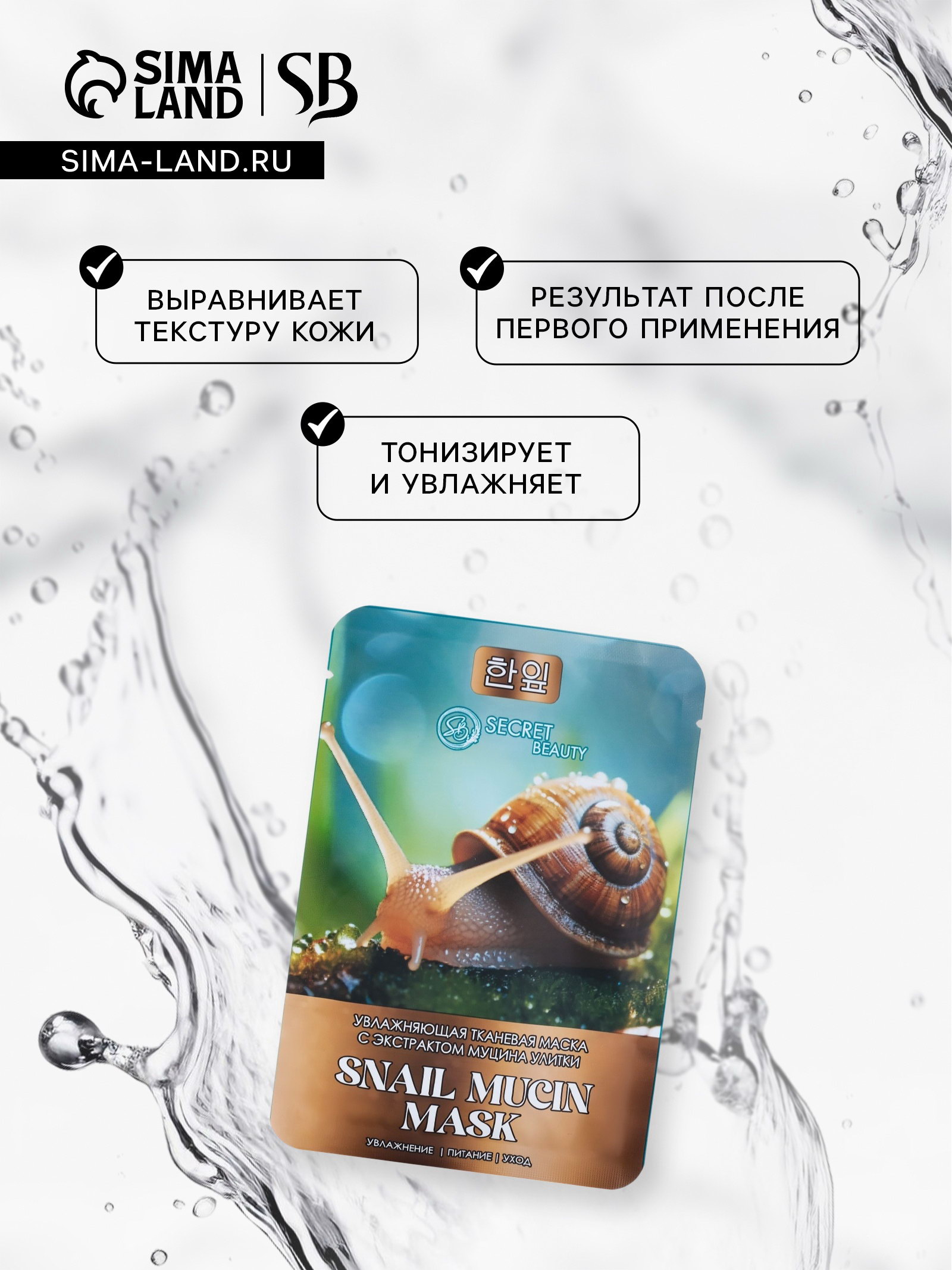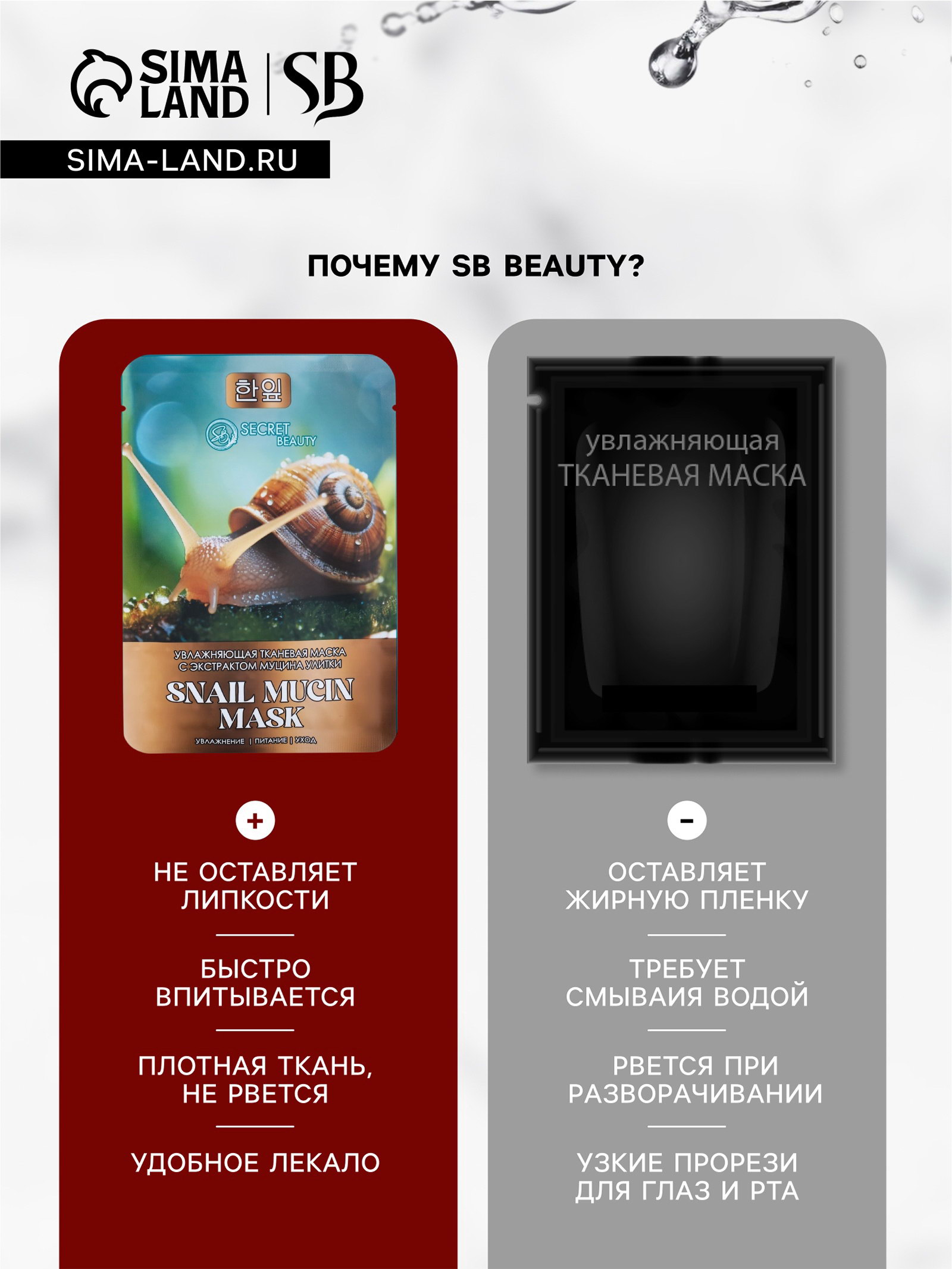 Тканевая маска для лица с экстрактом муцина улитки, увлажняющая, 9x17x0.2 см., SB BEAUTY, Китай