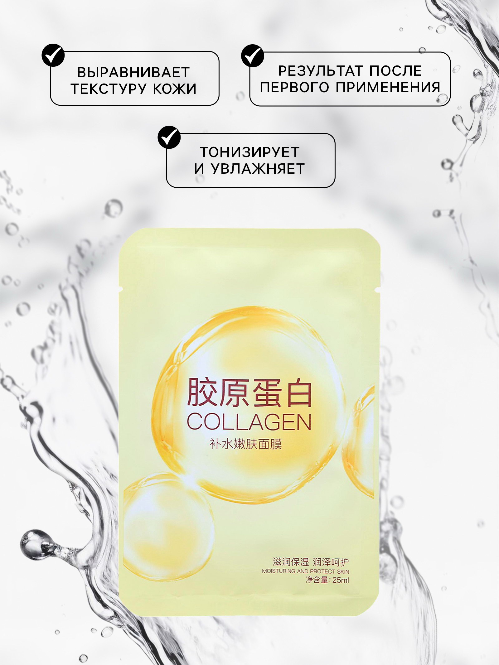 Тканевая маска для лица с коллагеном, увлажняющая, 9x17x0.2 см., Китай