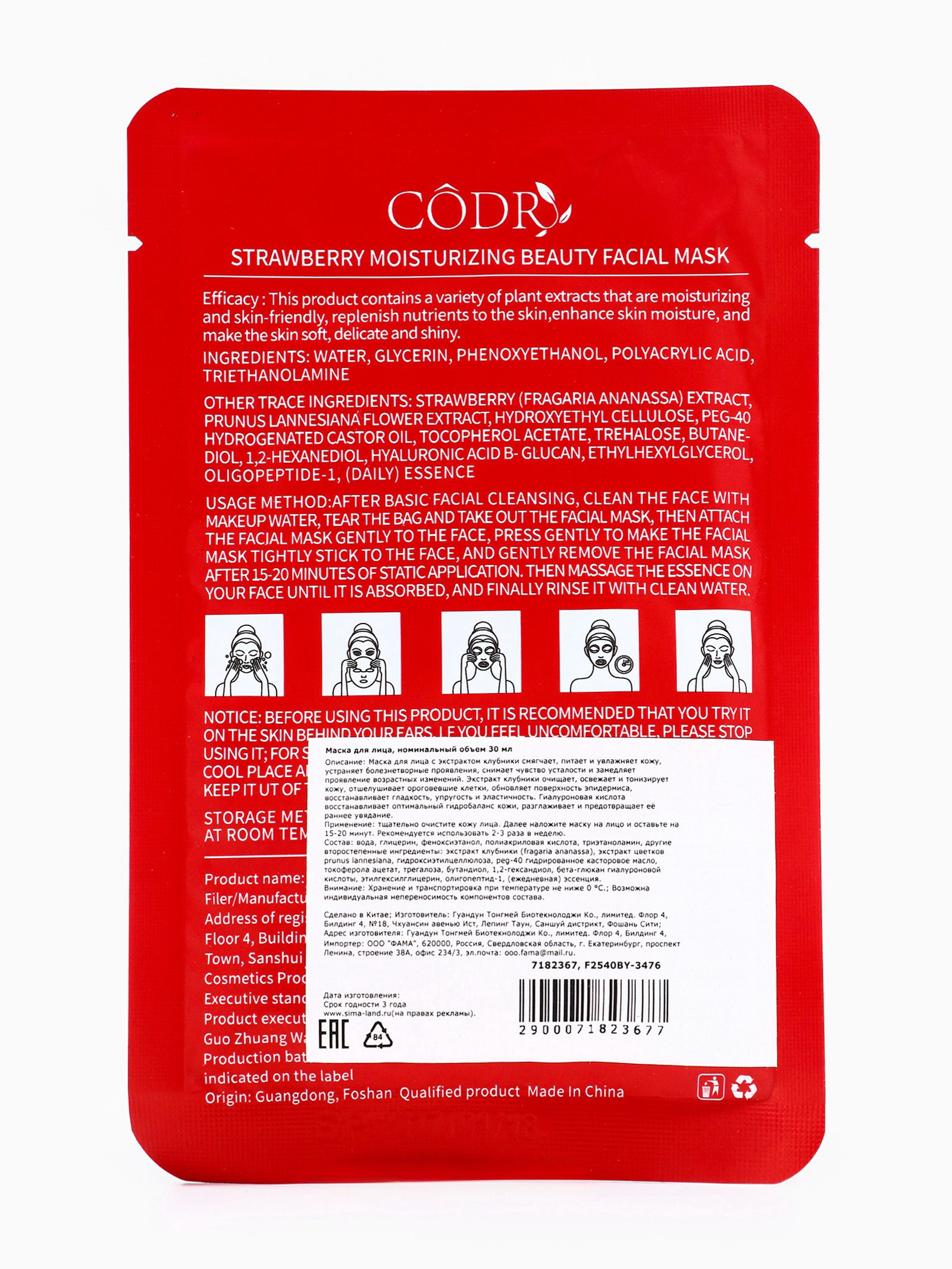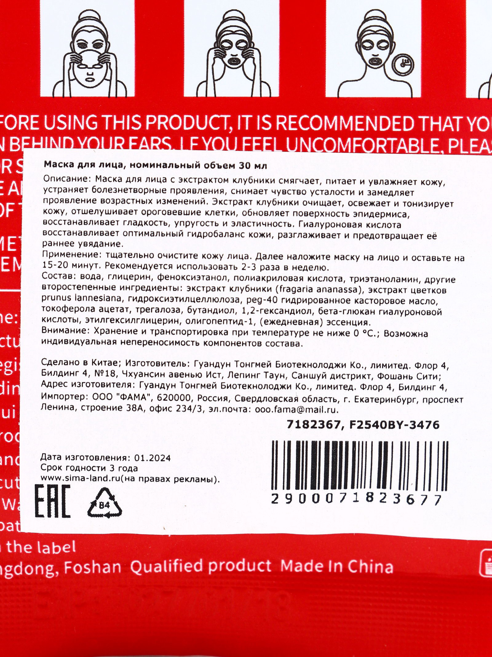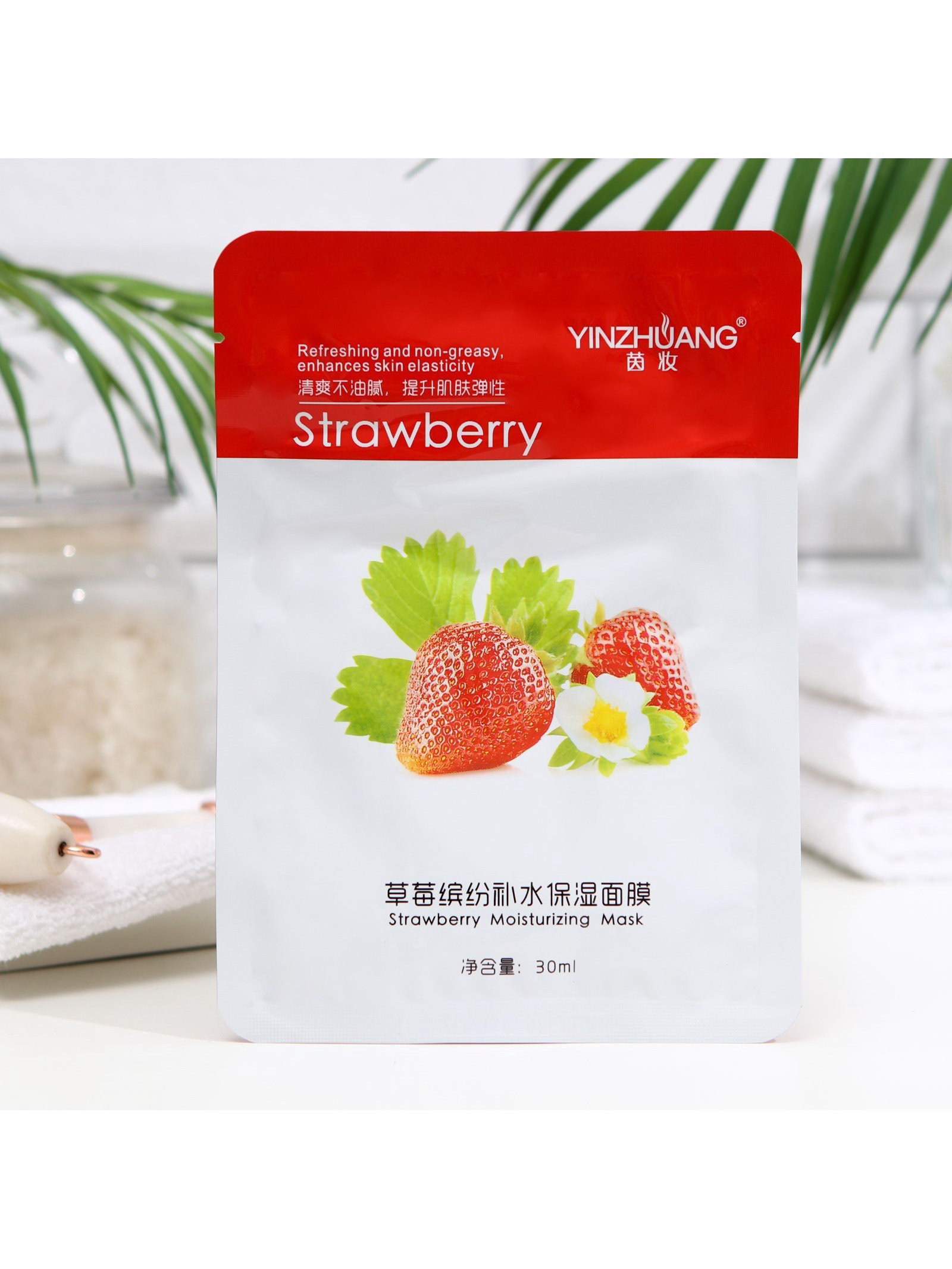 Тканевая маска для лица с клубникой, увлажняющая, 11x16x0.5 см., YINZHUANG, Китай