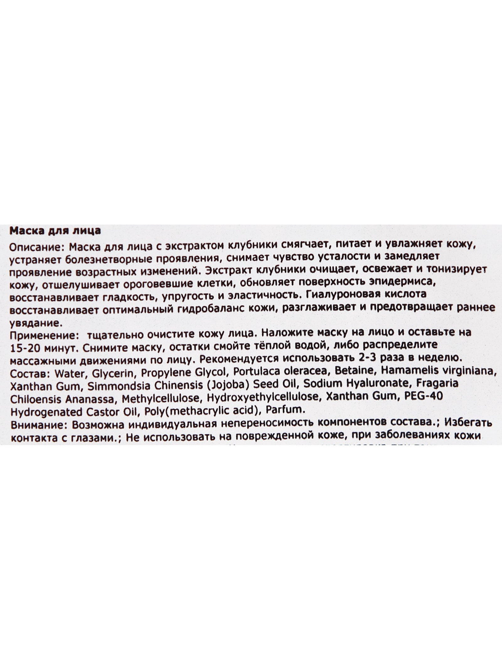 Размер упаковки: 11.5 x 0.5 x 16.5 см. Набор: Нет tnved: 3304990000 tnved: 3304990000 Область применения: Для лица Тип маски: Тканевая Тип маски: Тканевая Назначение: Увлажнение Тип кожи: Для всех типов Маска для лица с экстрактом клубники смягчает, питает и увлажняет кожу, устраняет болезнетворные проявления, снимает чувство усталости и замедляет проявление возрастных изменений. Экстракт клубники очищает, освежает и тонизирует кожу, отшелушивает ороговевшие клетки, обновляет поверхность эпидермиса, восстанавливает гладкость, упругость и эластичность. Гиалуроновая кислота восстанавливает оптимальный гидробаланс кожи, разглаживает и предотвращает её раннее увядание. Способ применения: тщательно очистите кожу лица. Наложите маску на лицо и оставьте на 15-20 минут. Снимите маску, остатки смойте тёплой водой, либо распределите массажными движениями по лицу. Рекомендуется использовать 2-3 раза в неделю. Состав: Water, Glycerin, Propylene Glycol, Portulaca oleracea, Betaine, Hamamelis virginiana, Xanthan Gum, Simmondsia Chinensis (Jojoba) Seed Oil, Sodium Hyaluronate, Fragaria Chiloensis Ananassa, Methylcellulose, Hydroxyethylcellulose, Xanthan Gum, PEG-40 Hydrogenated Castor Oil, Poly(methacrylic acid), Parfum. | ||