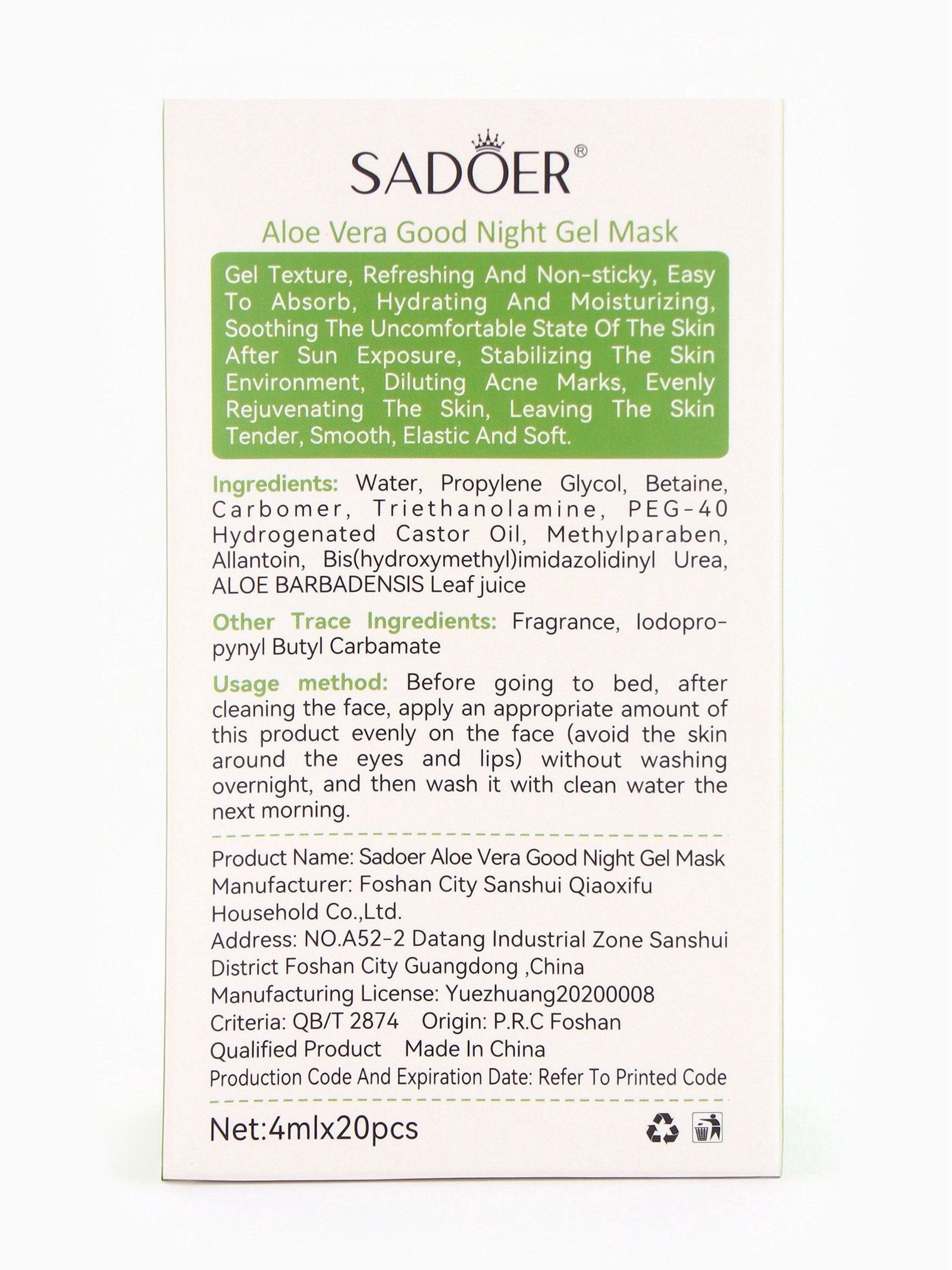 Маска ночная для лица с Алоэ вера, 4 мл, набор 20 шт., 10x15x2 см., SADOER, Китай