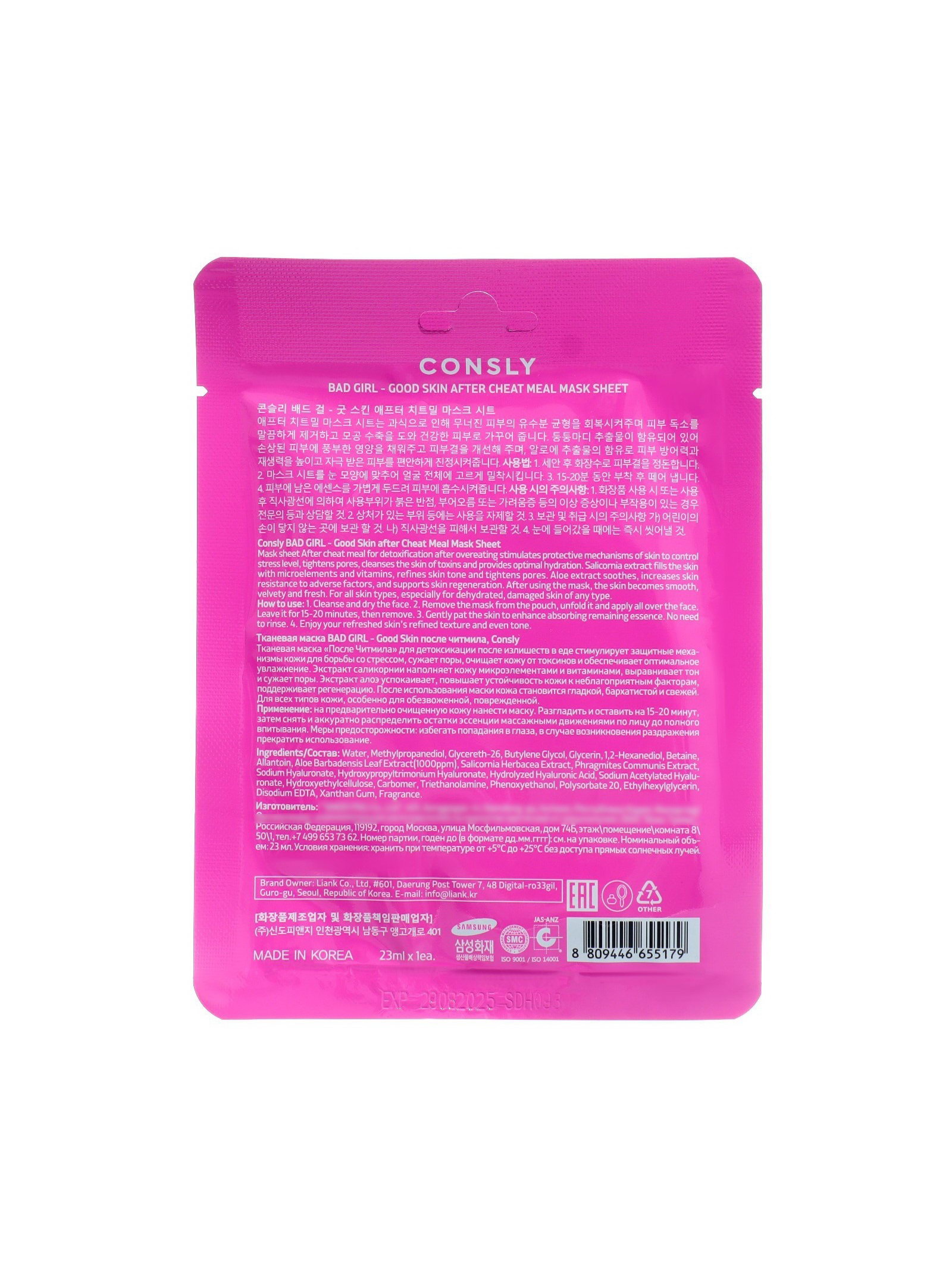 Тканевая маска для детоксикации кожи лица "После читмила", 23 мл, Consly, Южная Корея
