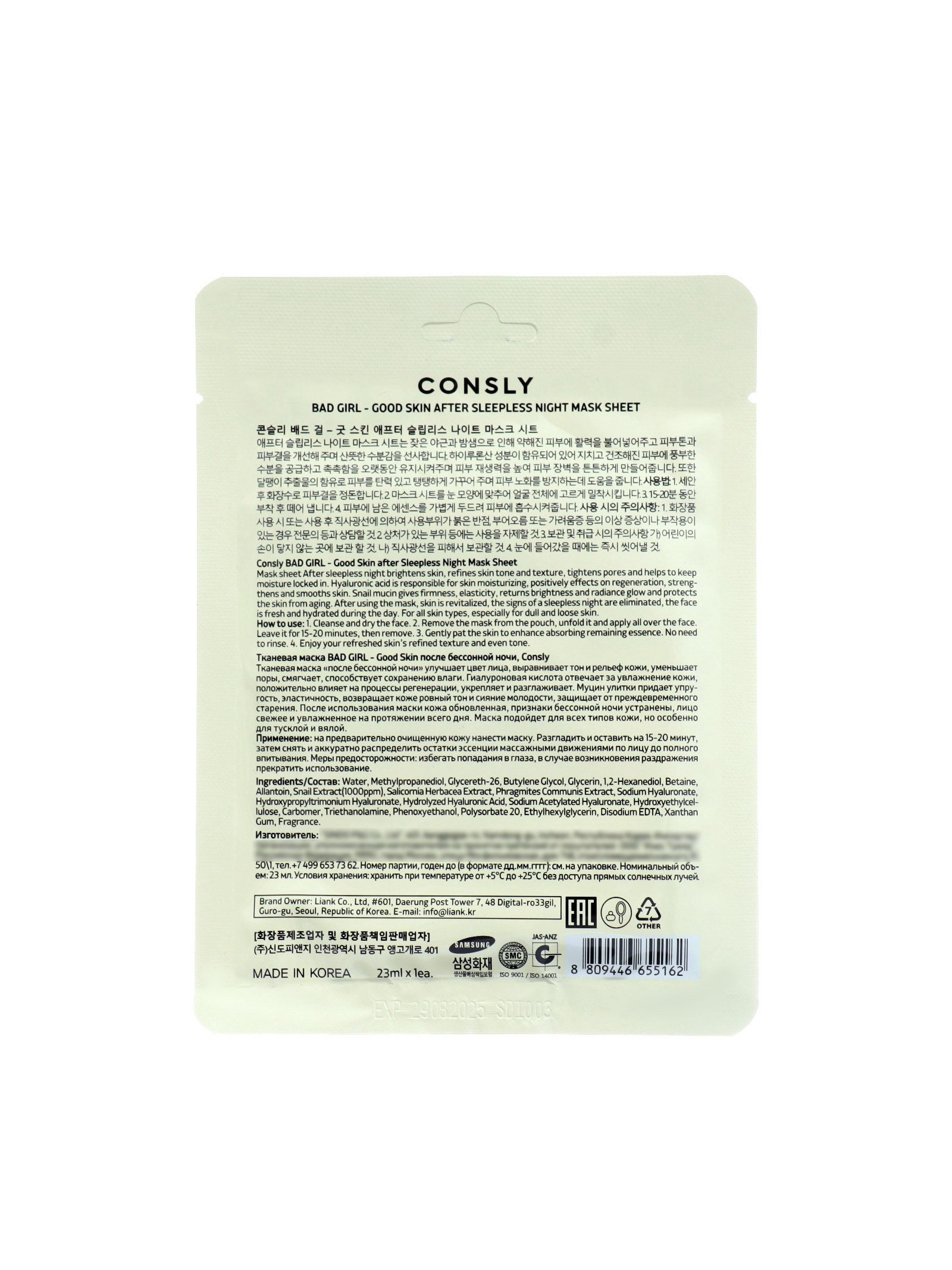 Маска тканевая для лица "После бессонной ночи", 23 мл, Consly, Южная Корея