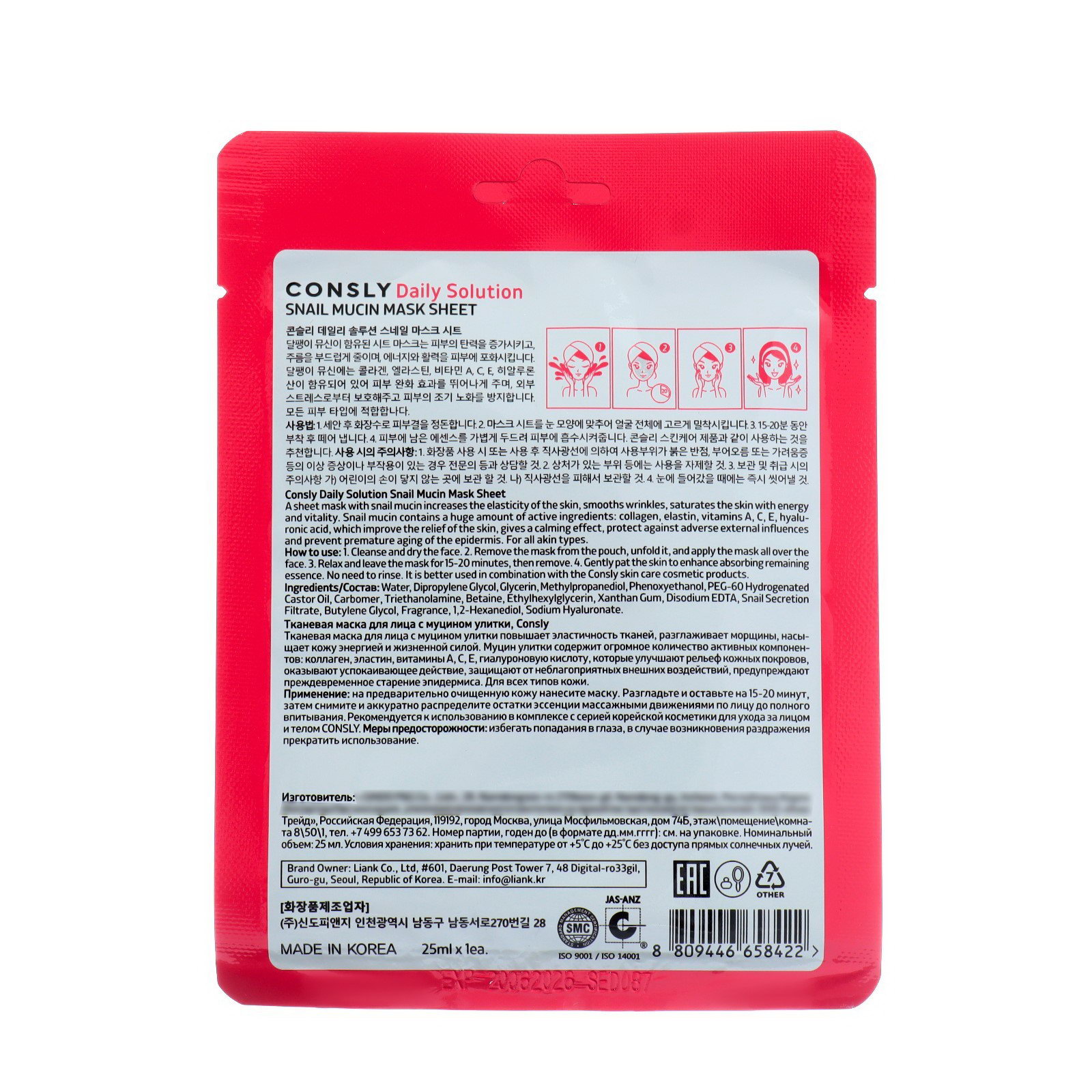 Тканевая маска для лица с муцином улитки, 25 мл, Consly, Южная Корея