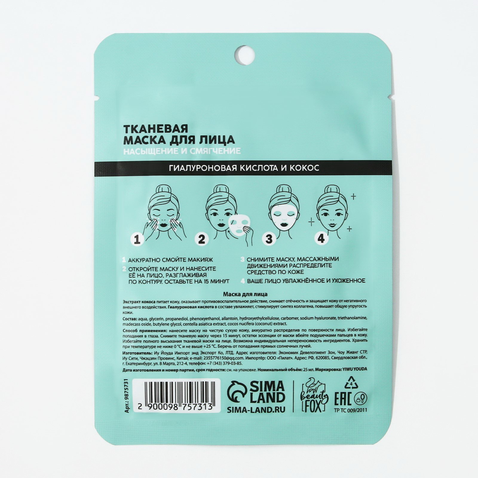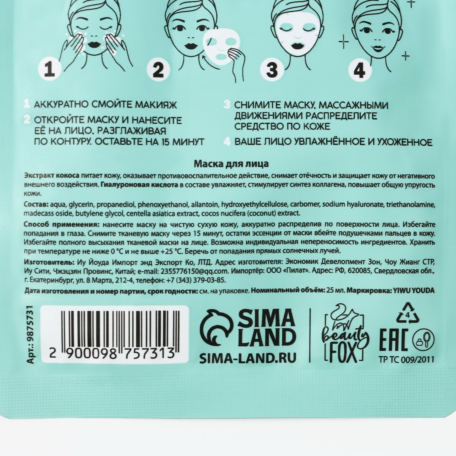 Маска для лица тканевая с гиалуроновой кислотой Exotic coconut, насыщение и смягчение, 0.5x11.5x16 см., PICO MICO, Китай