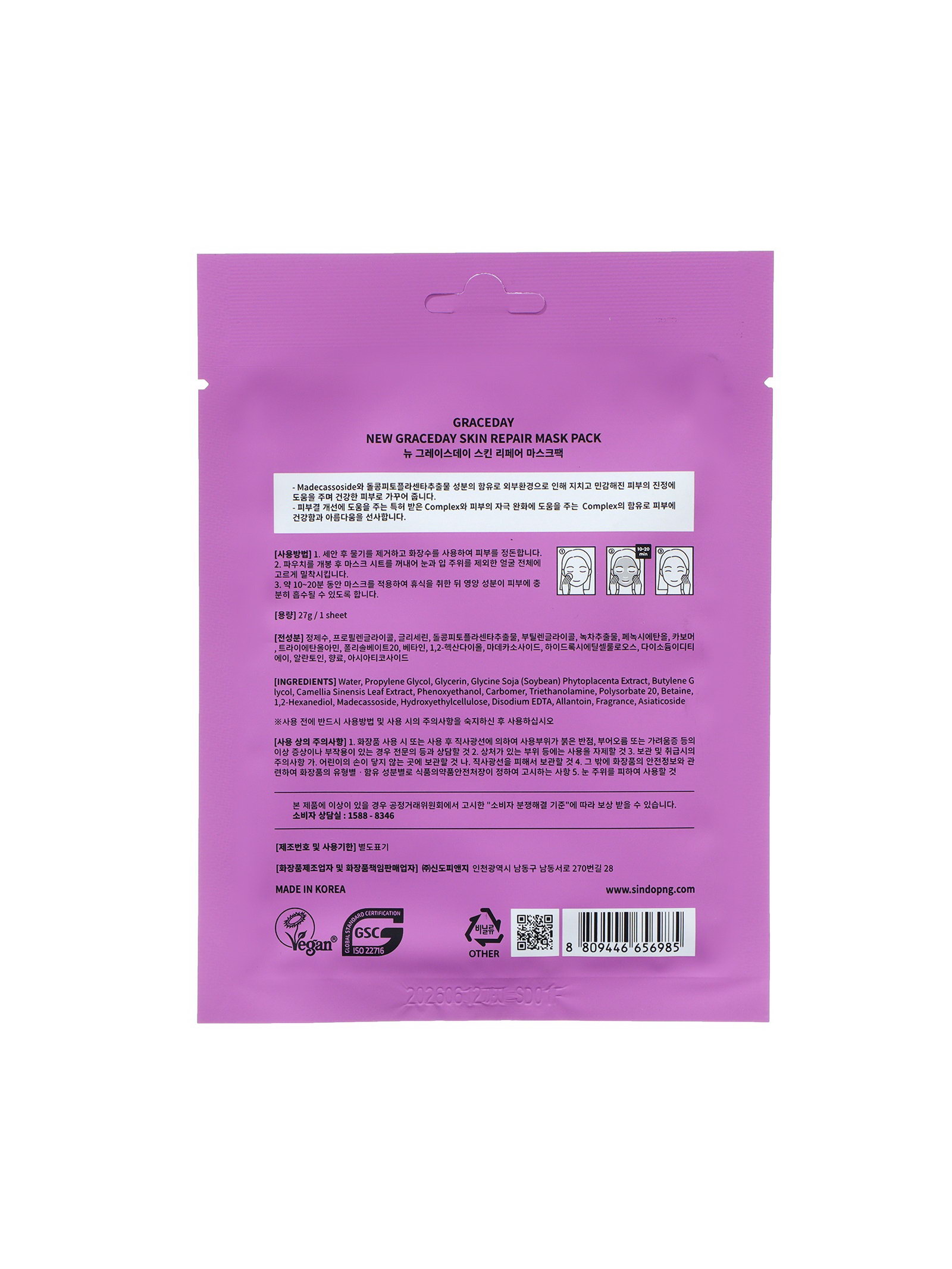 Маска тканевая для лица для восстановления кожи, 27 мл, 27 мл., Grace Day, Южная Корея