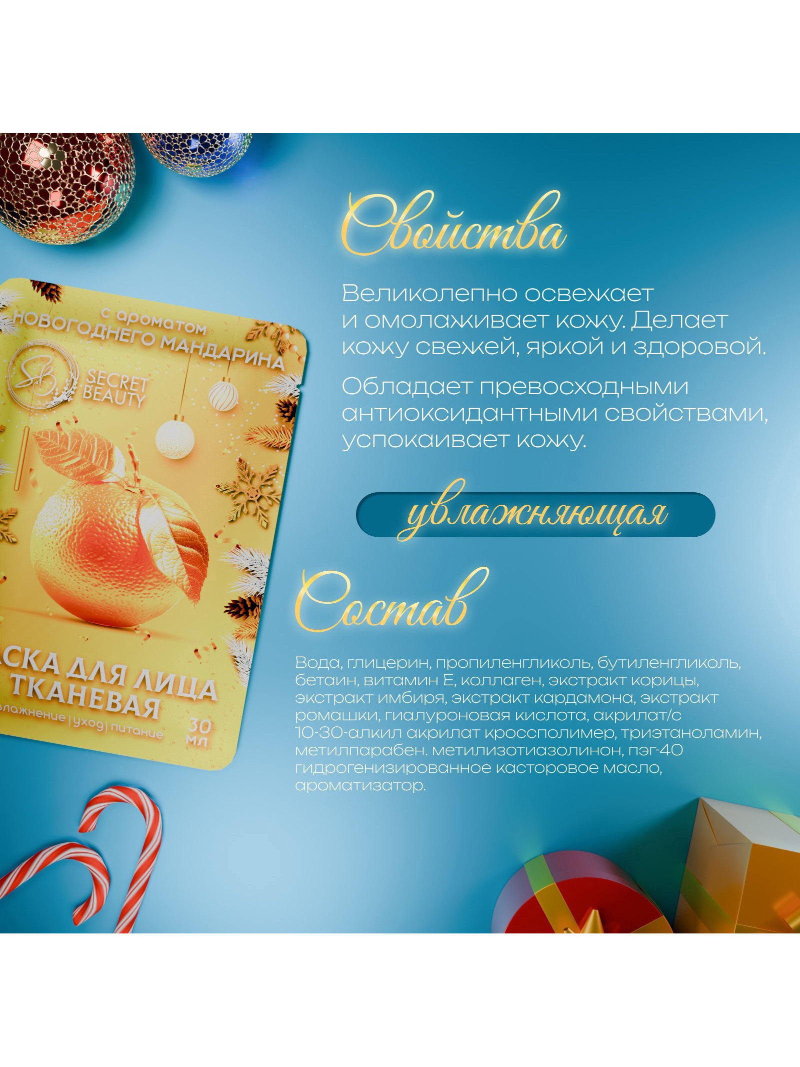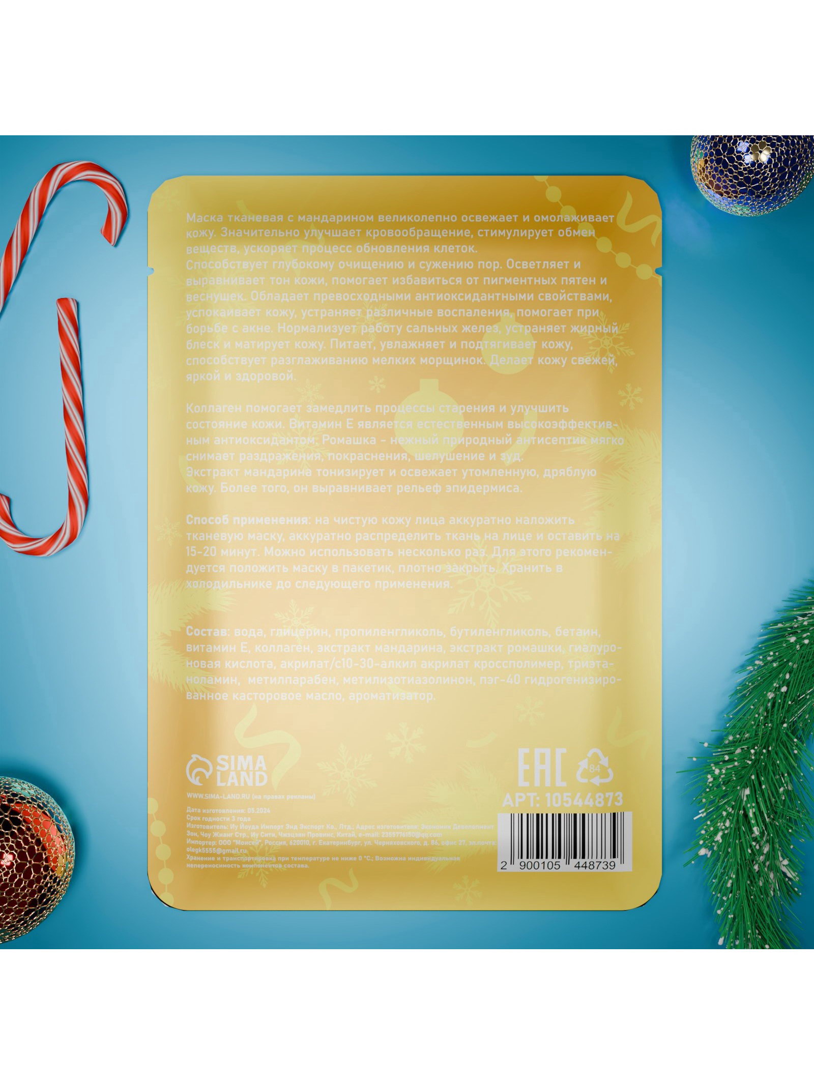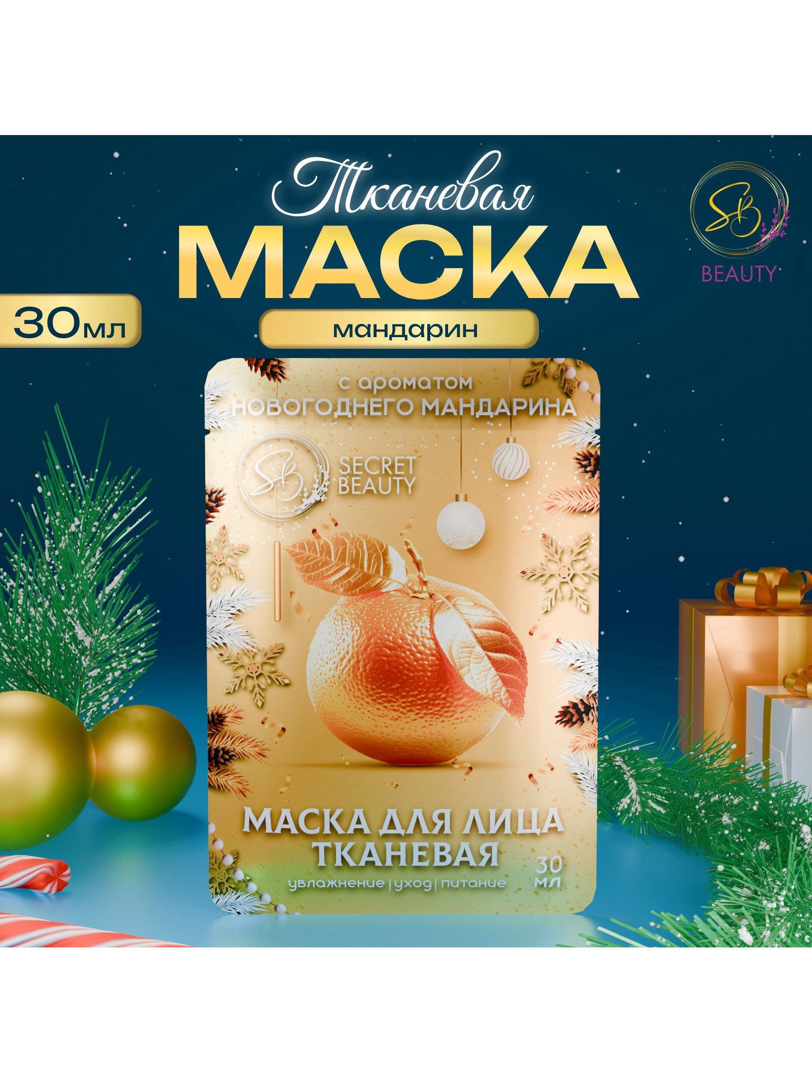 Новогодняя маска для лица, тканевая, увлажняющая, с ароматом новогоднего мандарина, SB BEAUTY, Китай