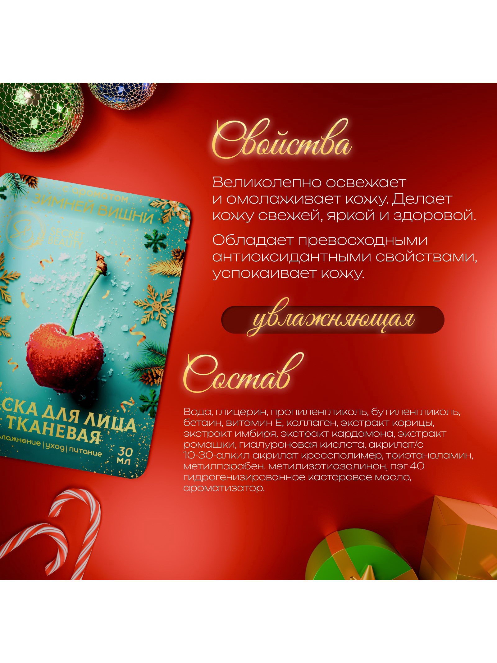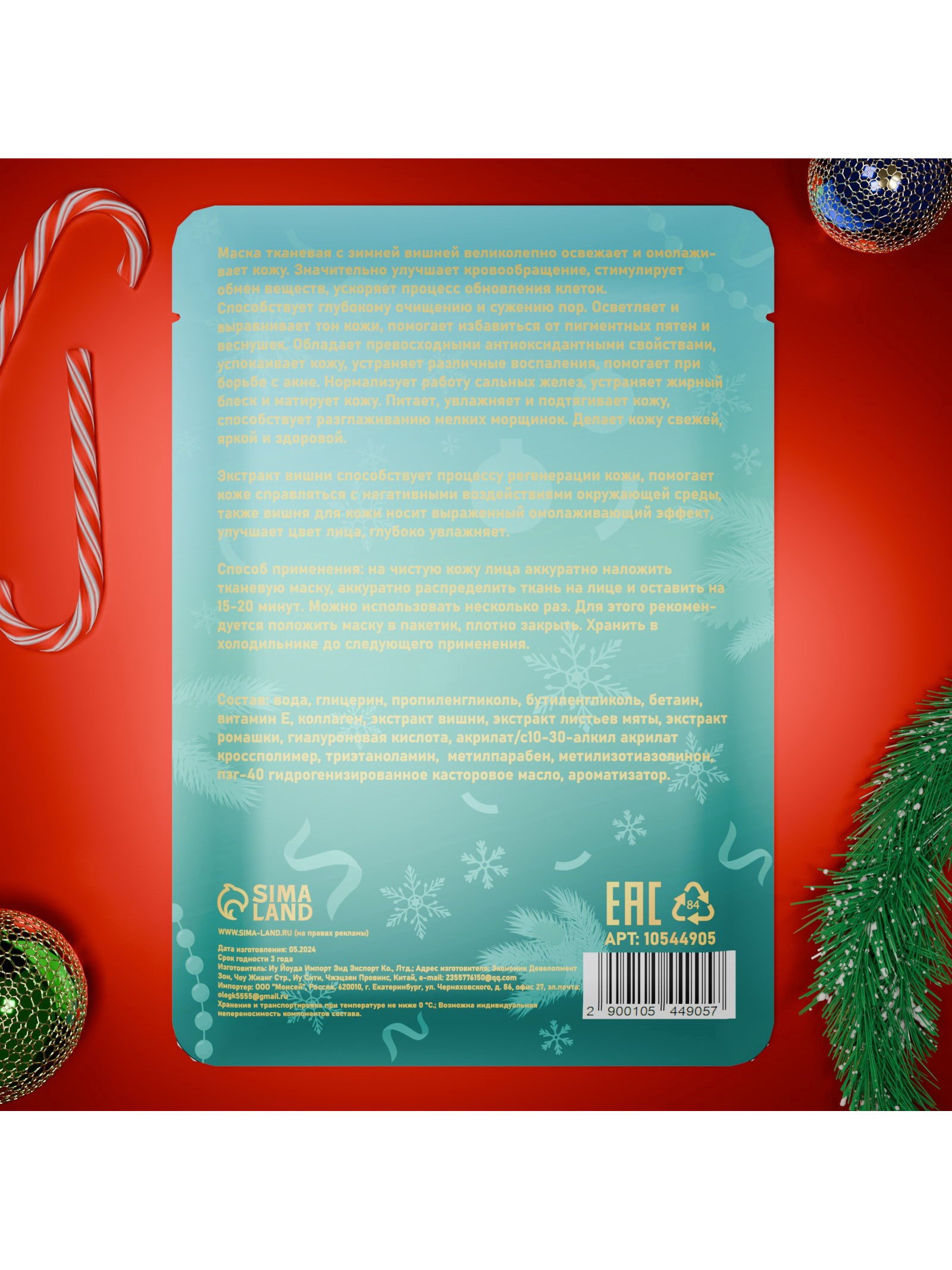 Новогодняя маска для лица, тканевая, увлажняющая, с ароматом зимней вишни, SB BEAUTY, Китай