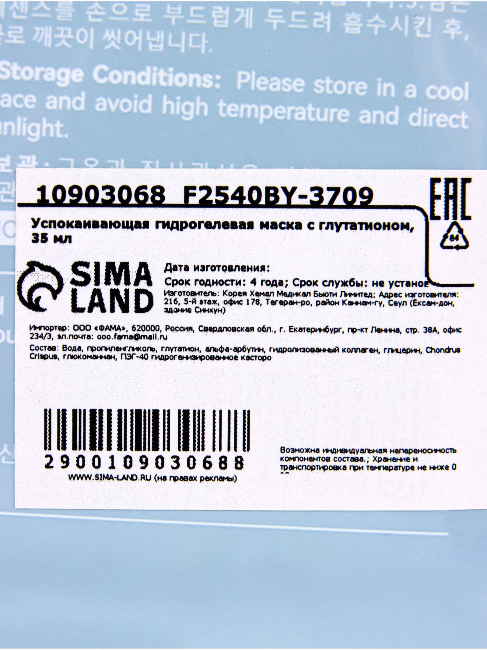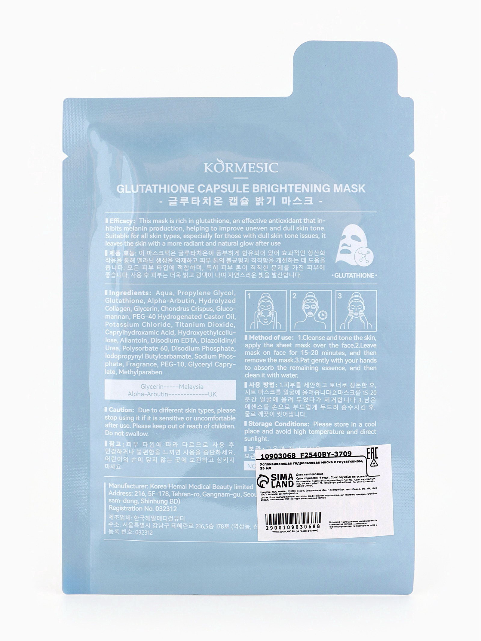 Гидрогелевая маска с глутатионом, успокаивающая, 35 мл, Kormesic, Китай