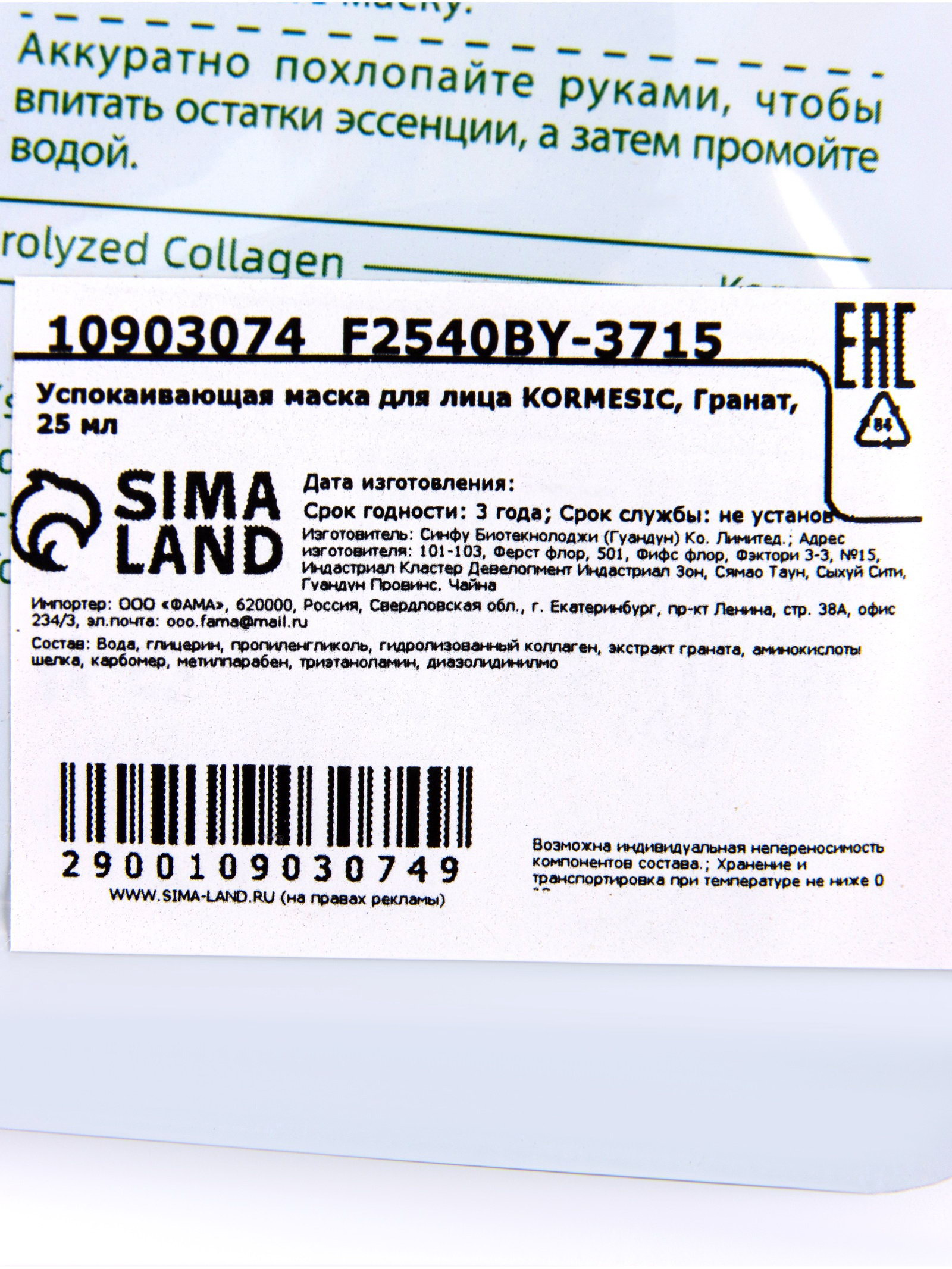 Успокаивающая маска для лица KORMESIC, Гранат, 25 мл, Китай