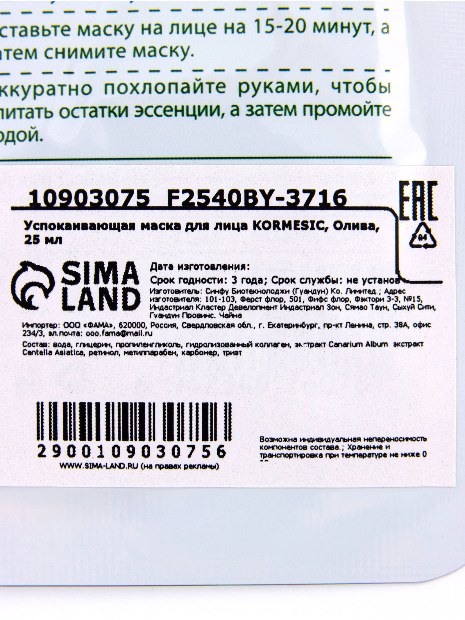 Успокаивающая маска для лица KORMESIC, Олива, 25 мл, Китай