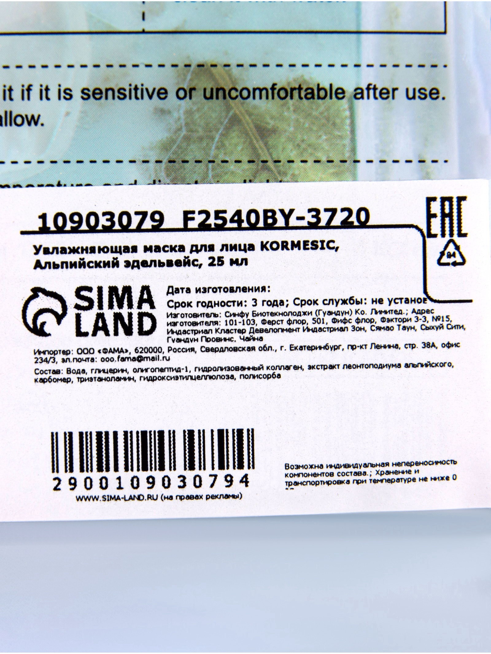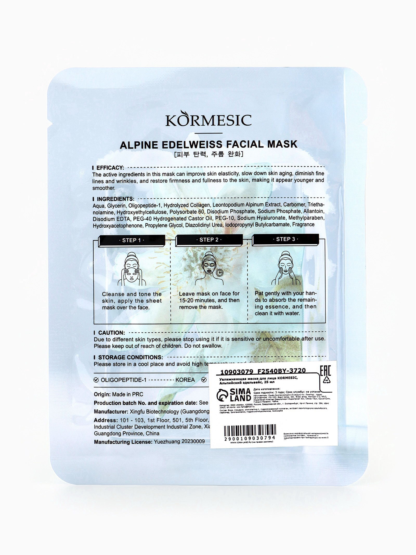 Маска тканевая для лица "Альпийский эдельвейс", увлажняющая, 25 мл, Kormesic, Китай