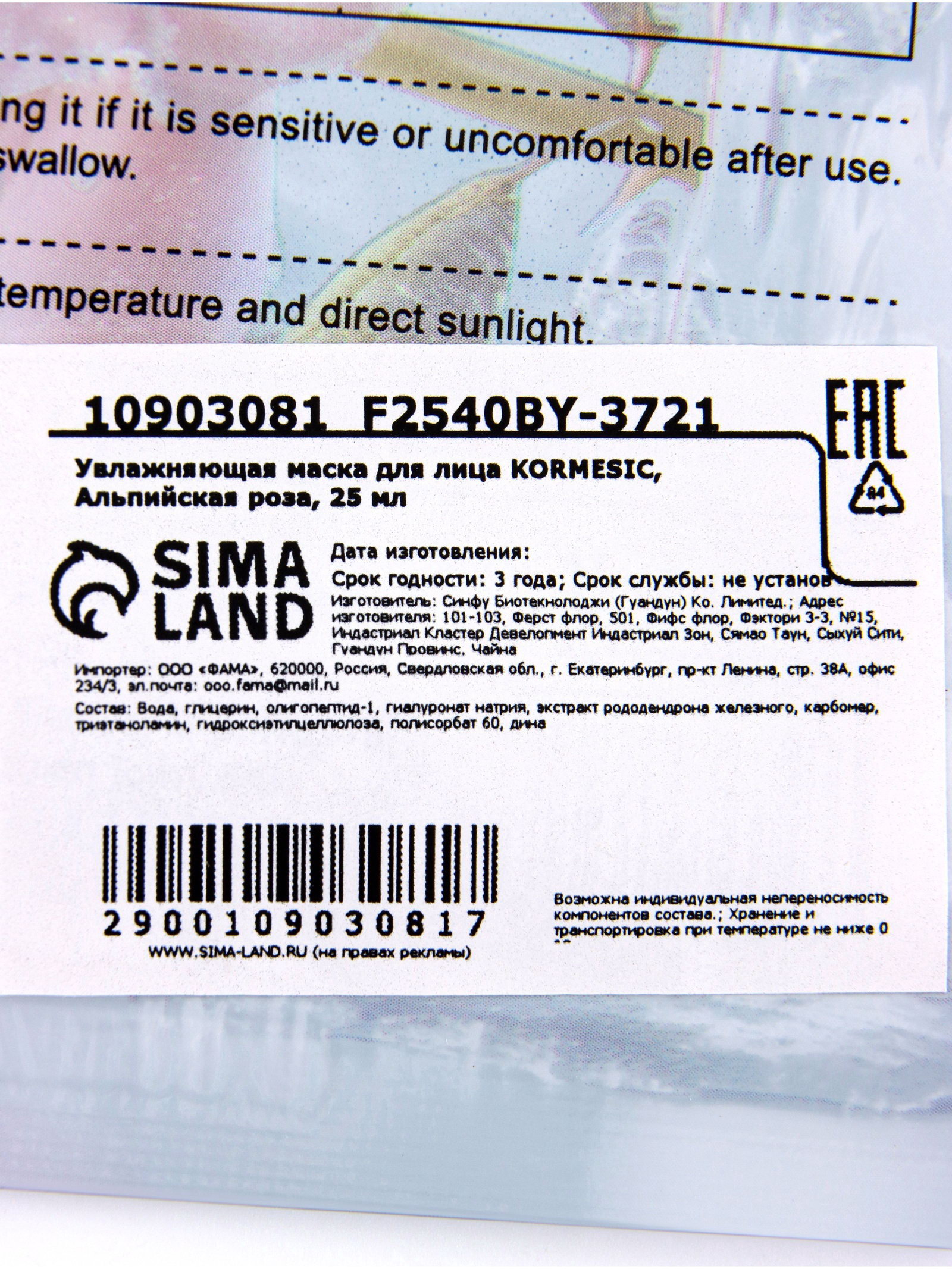 Маска тканевая для лица "Альпийская роза", увлажняющая, 25 мл, Kormesic, Китай