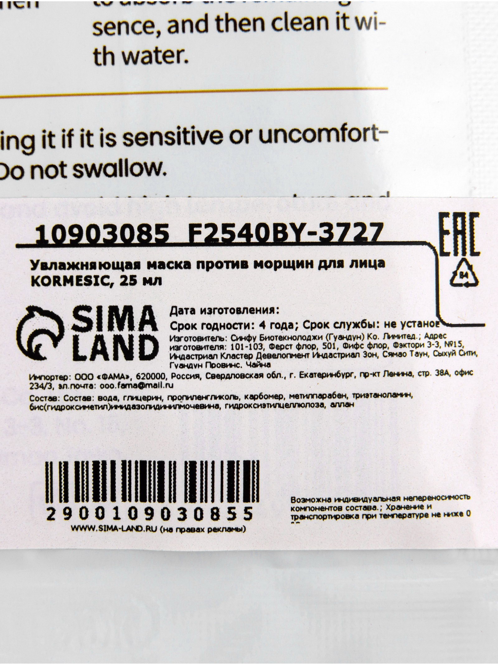 Маска тканевая для лица против морщин, увлажняющая, 25 мл, Kormesic, Китай