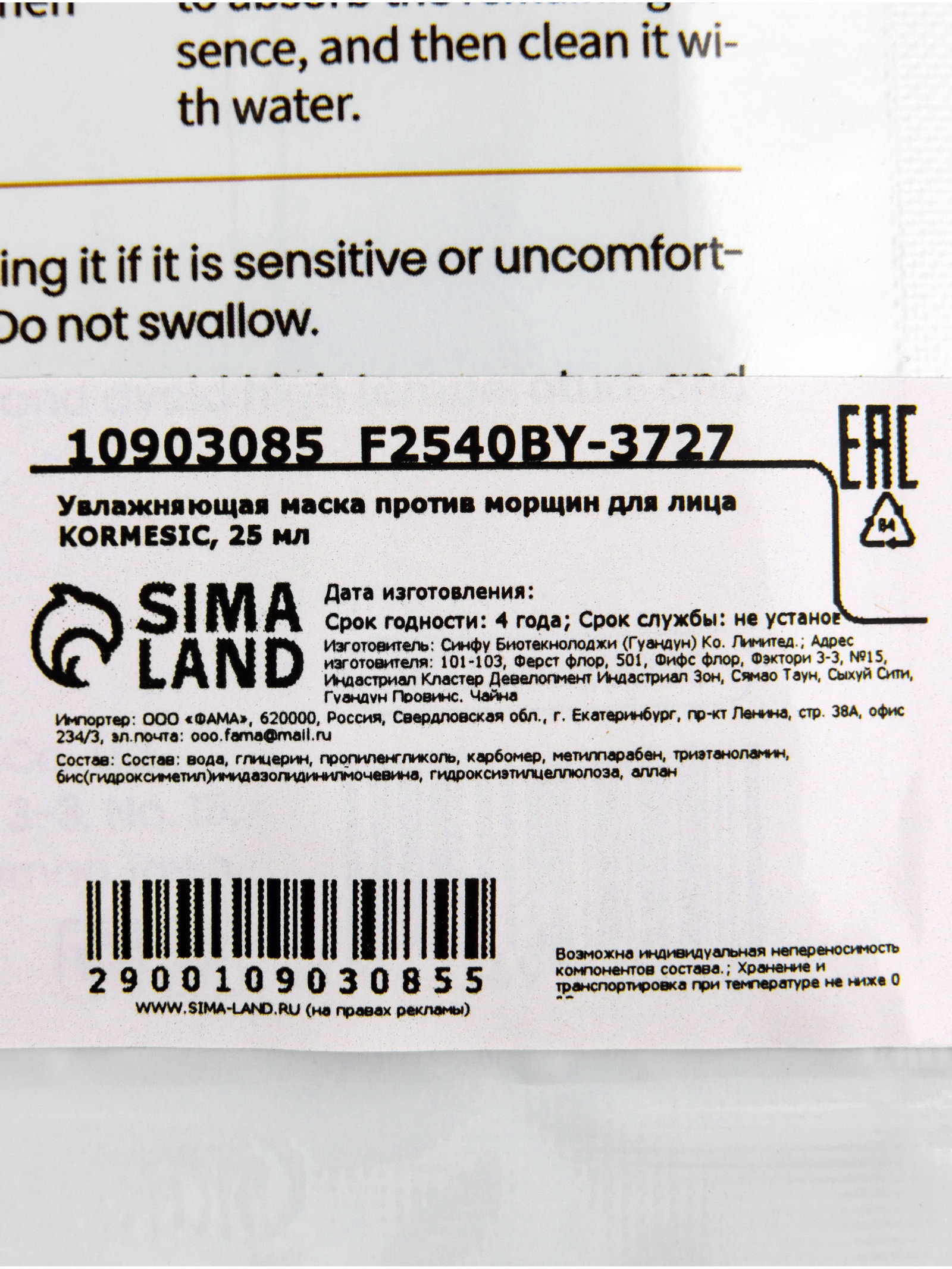 Увлажняющая маска против морщин для лица KORMESIC, 25 мл, Китай