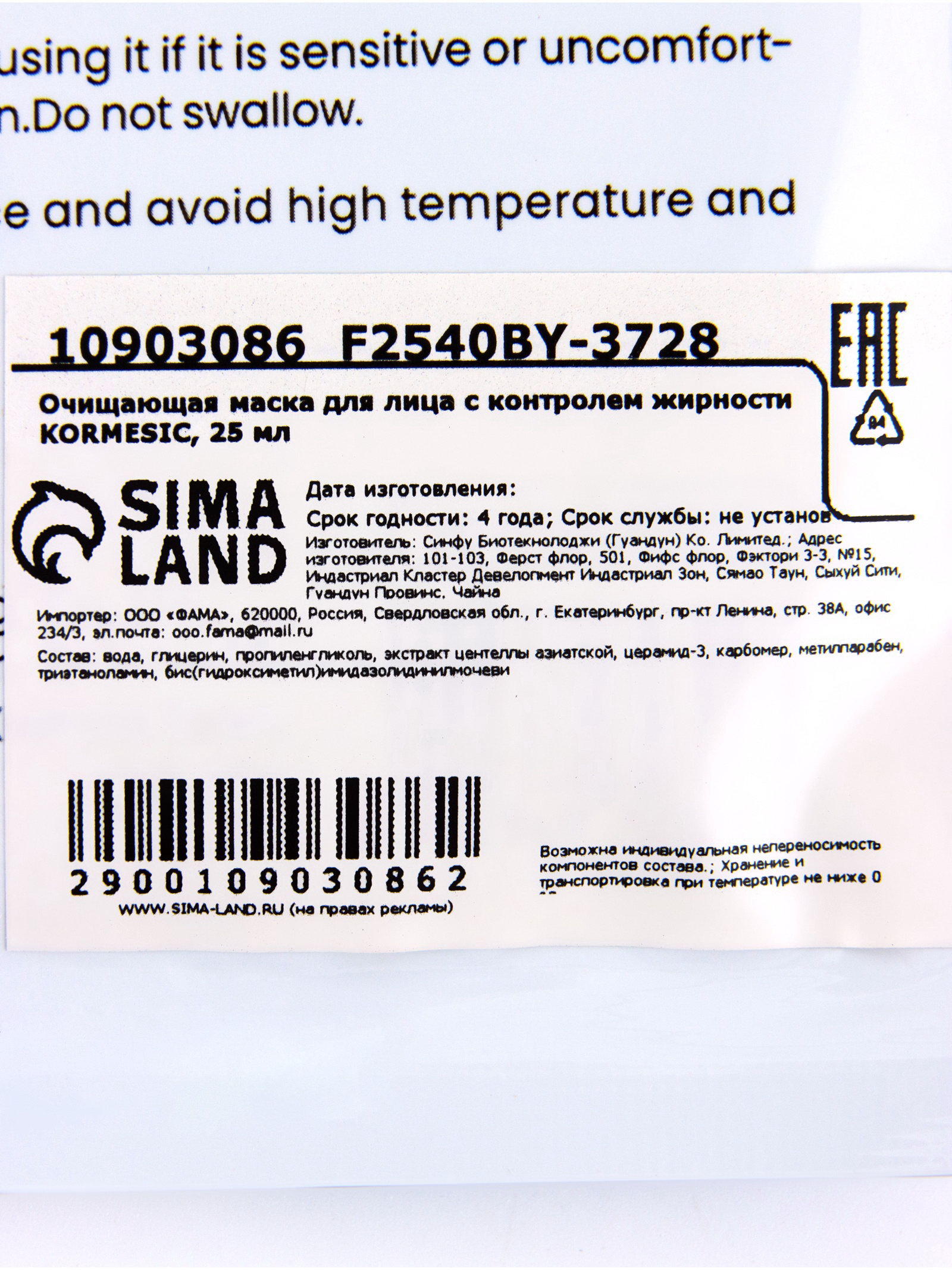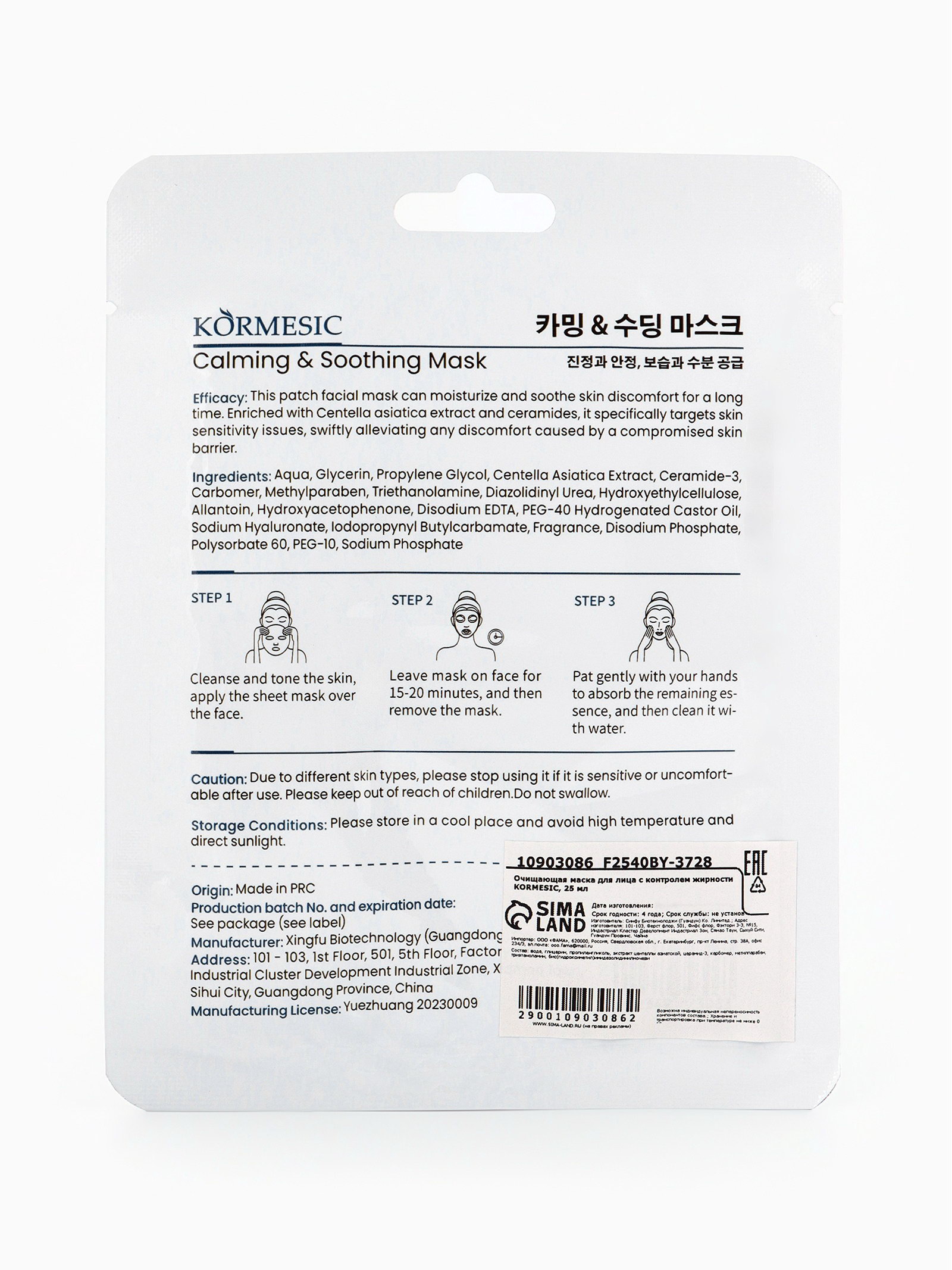 Очищающая маска для лица с контролем жирности KORMESIC, 25 мл, Китай