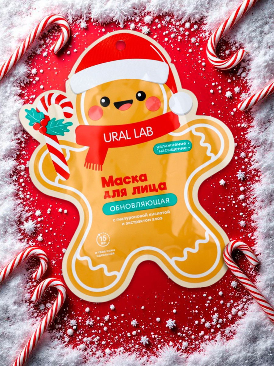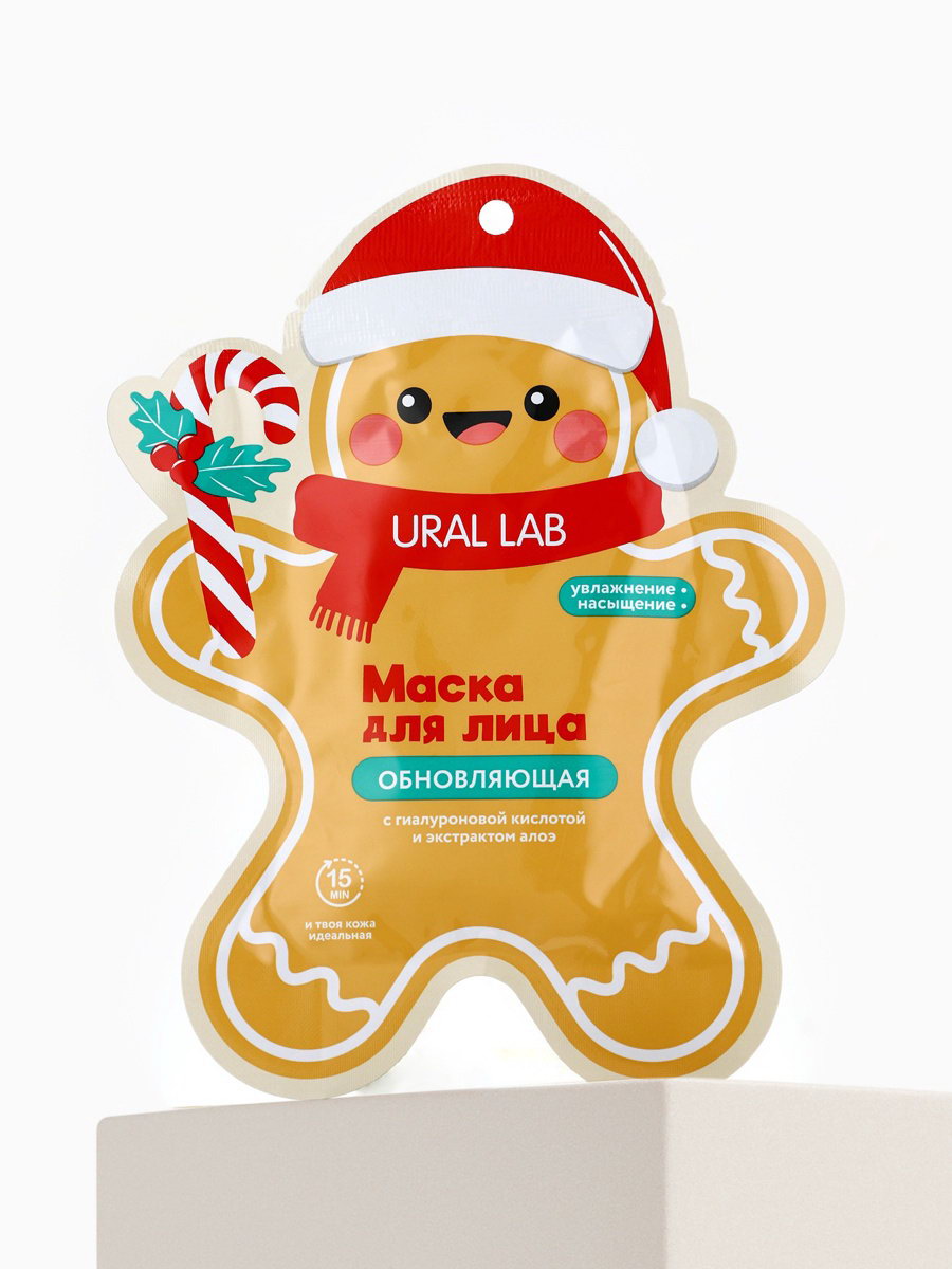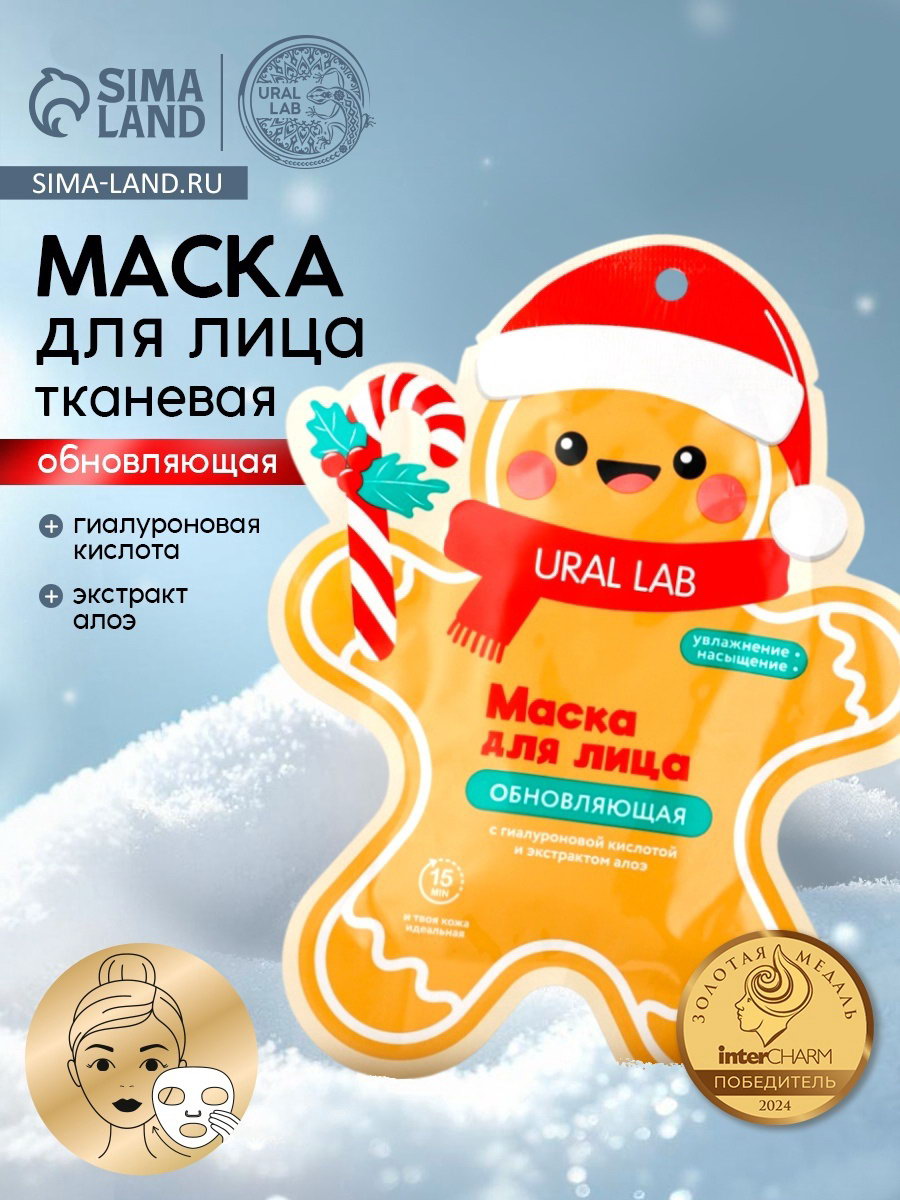 Тканевая маска для лица обновляющая, экстракт алоэ и гиалуроновая кислота, 22x16.5x0.1 см., URAL LAB, Китай