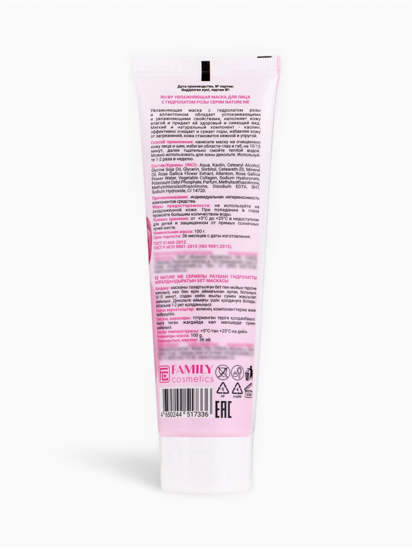 Маска для лица увлажняющая NATURE ME с гидролатом розы, 100 мл, Family Cosmetics, Россия