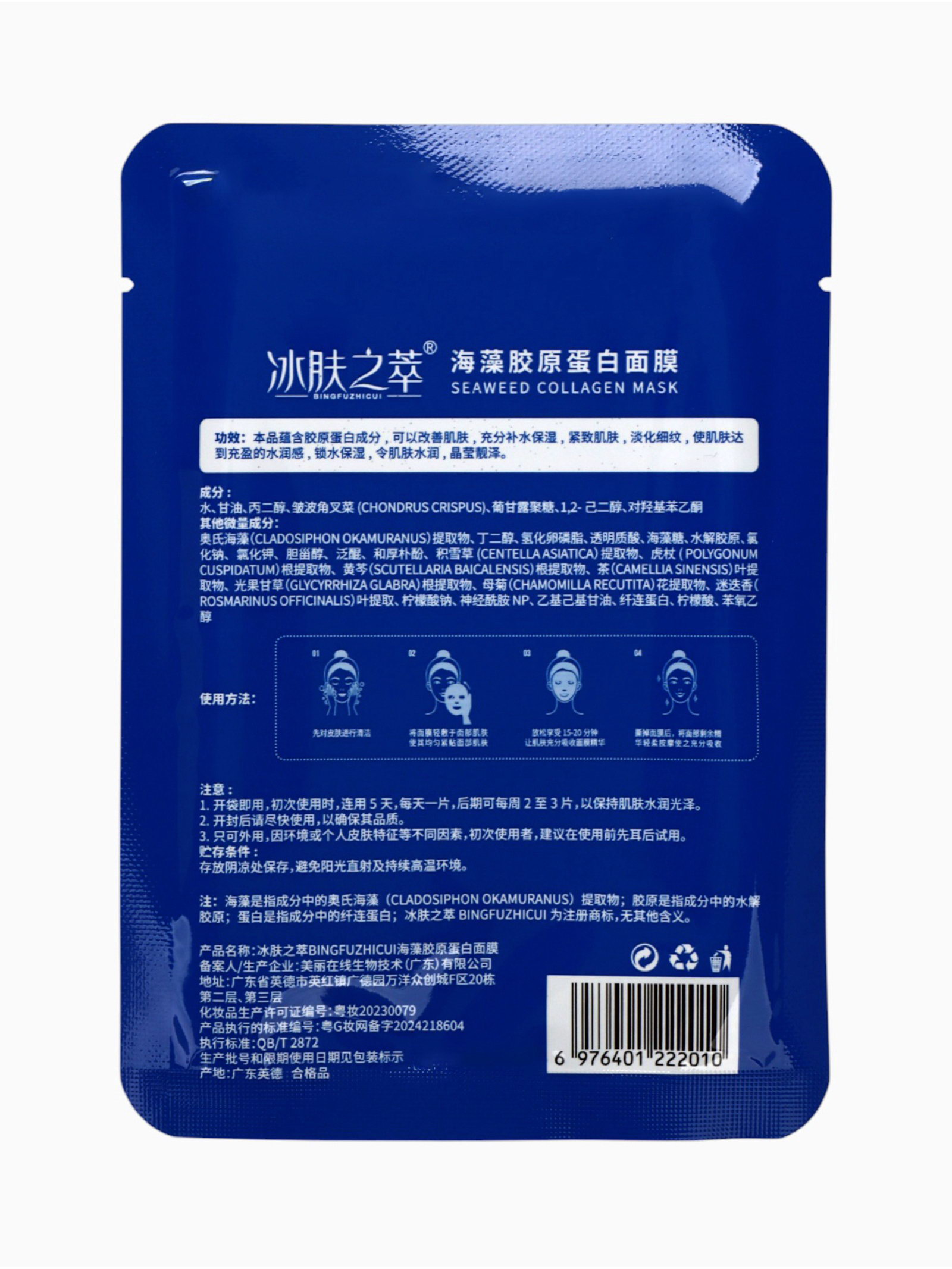 Гидрогелевые маски для лица с коллагеном, водоросли, 150 г, набор 5 шт., Китай