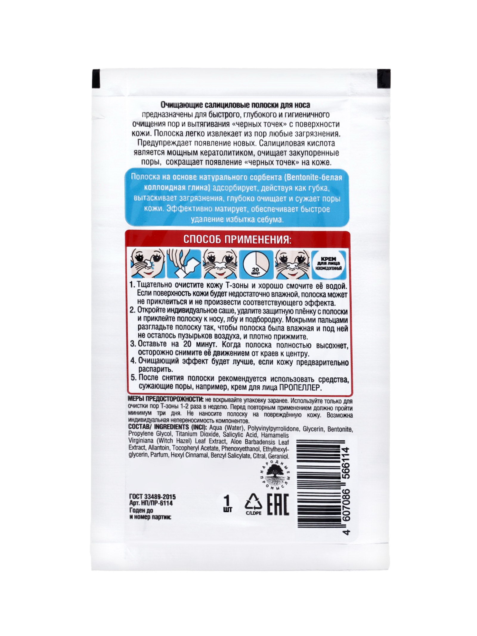 Полоски для носа очищающие салициловые, 1 шт., ПРОПЕЛЛЕР, Россия