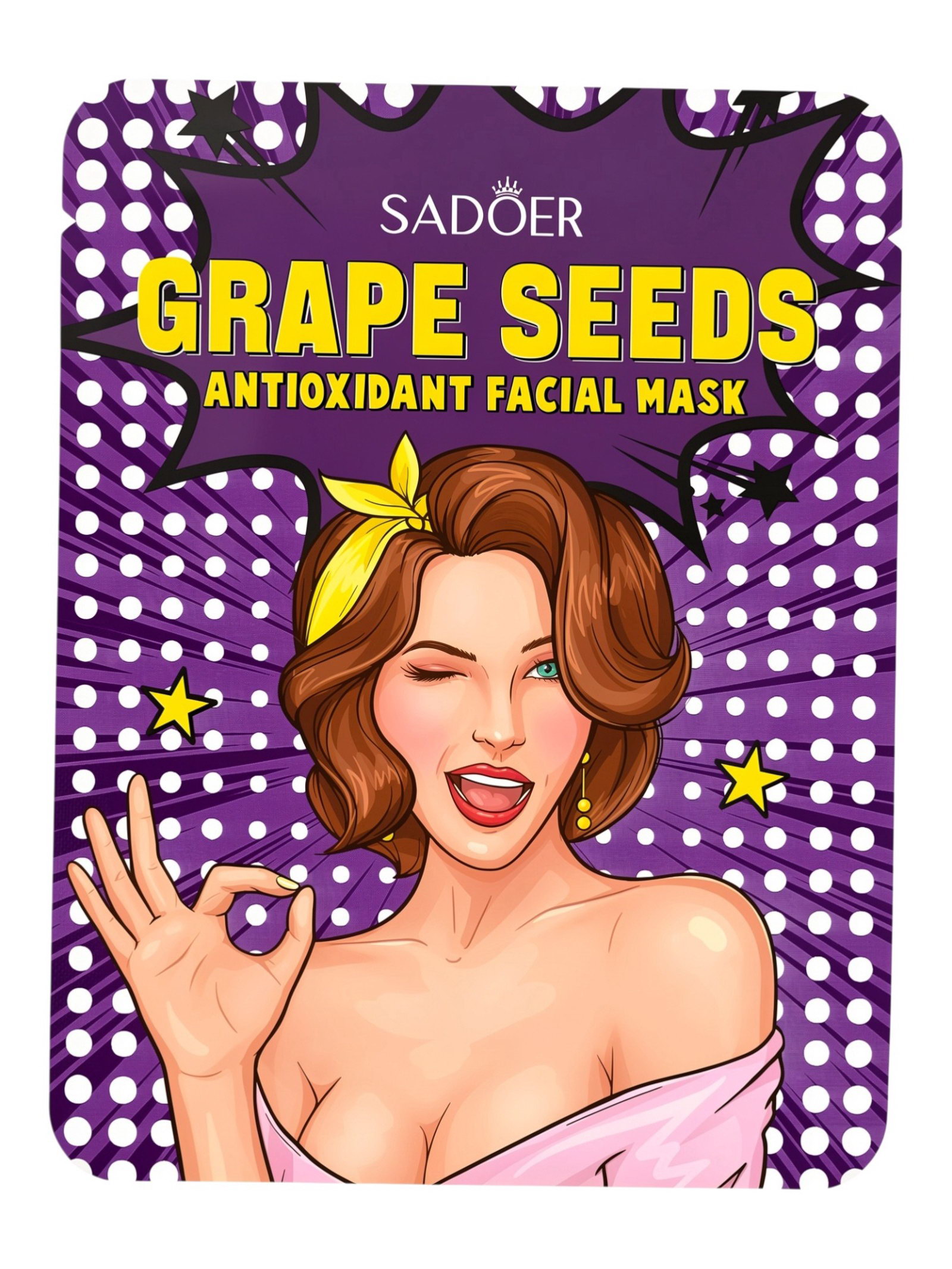 Маска тканевая антиоксидантная для лица с маслом косточек винограда, 25 г, SADOER, Китай