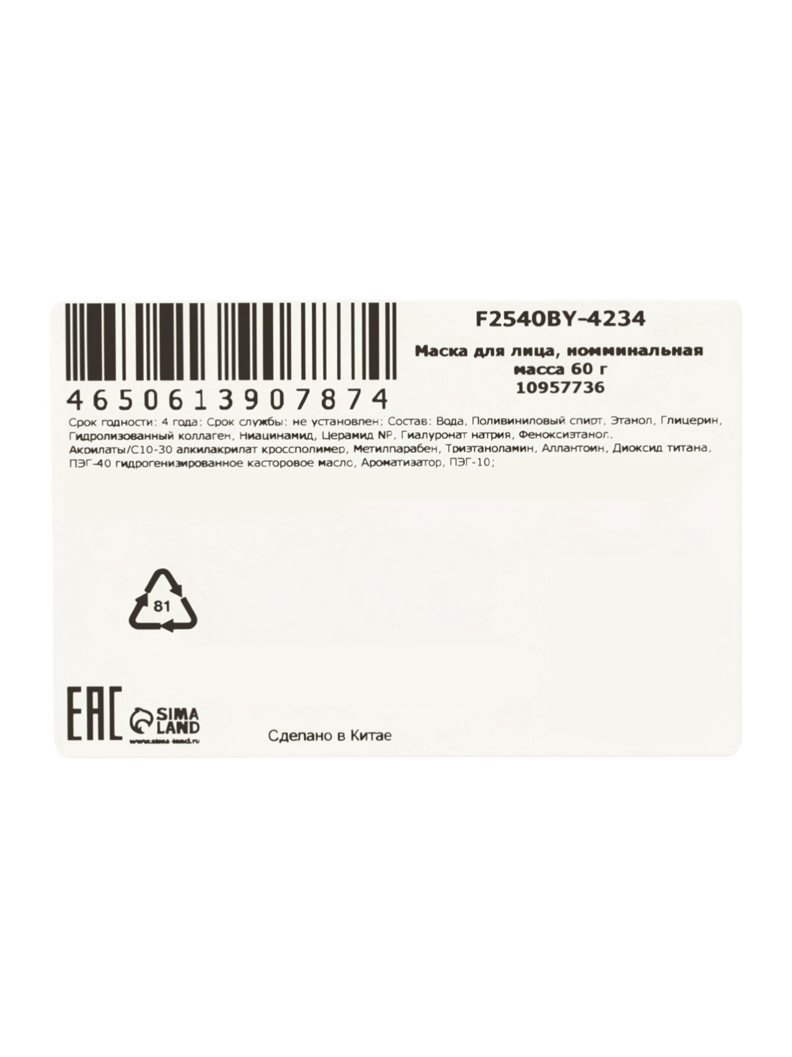 Маска для лица отшелушивающая с коллагеном KORMESIC, 60 г, Китай