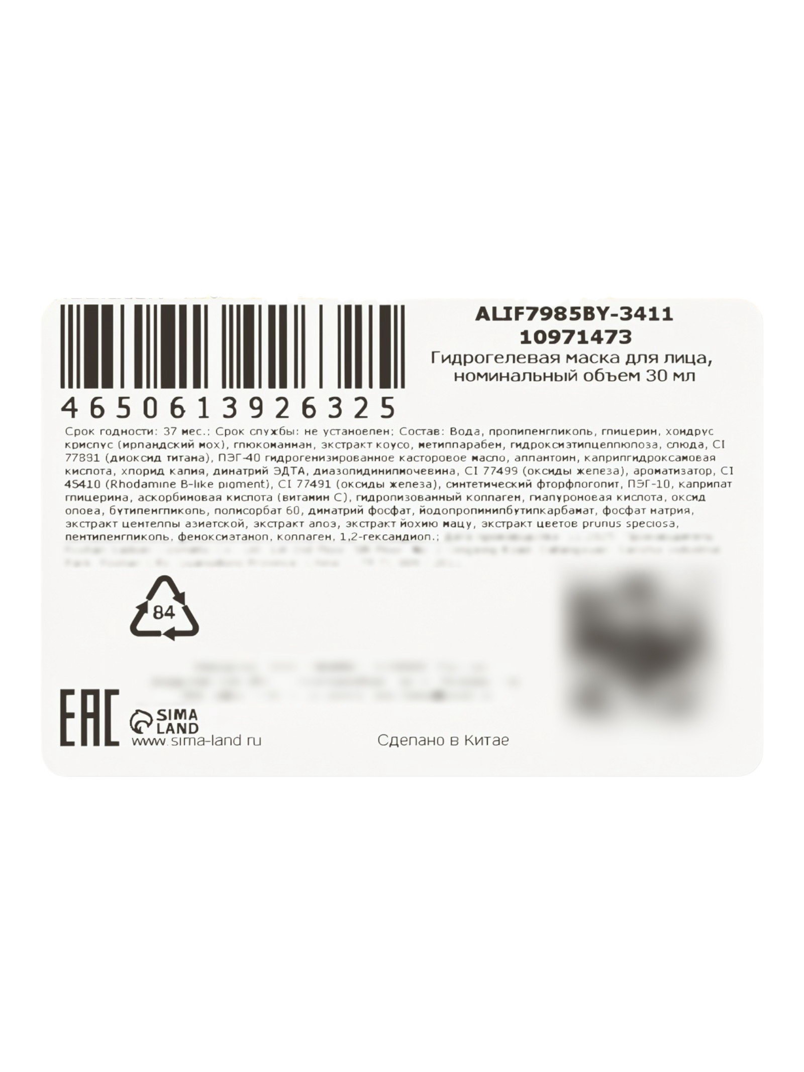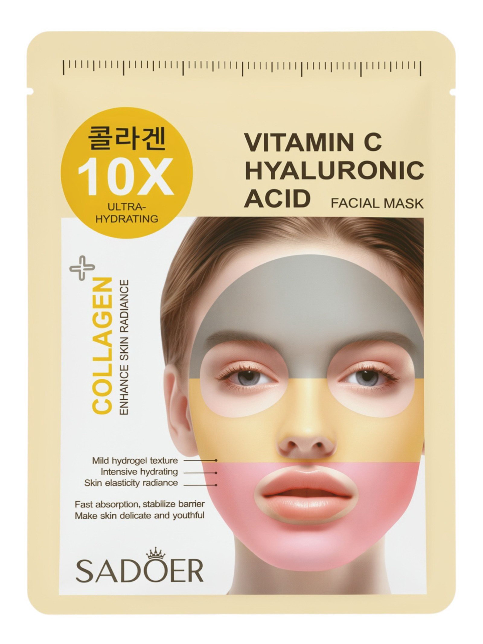 Гидрогелевая маска для лица, с витамином С и гиалуроновой кислотой, 30 мл, SADOER, Китай
