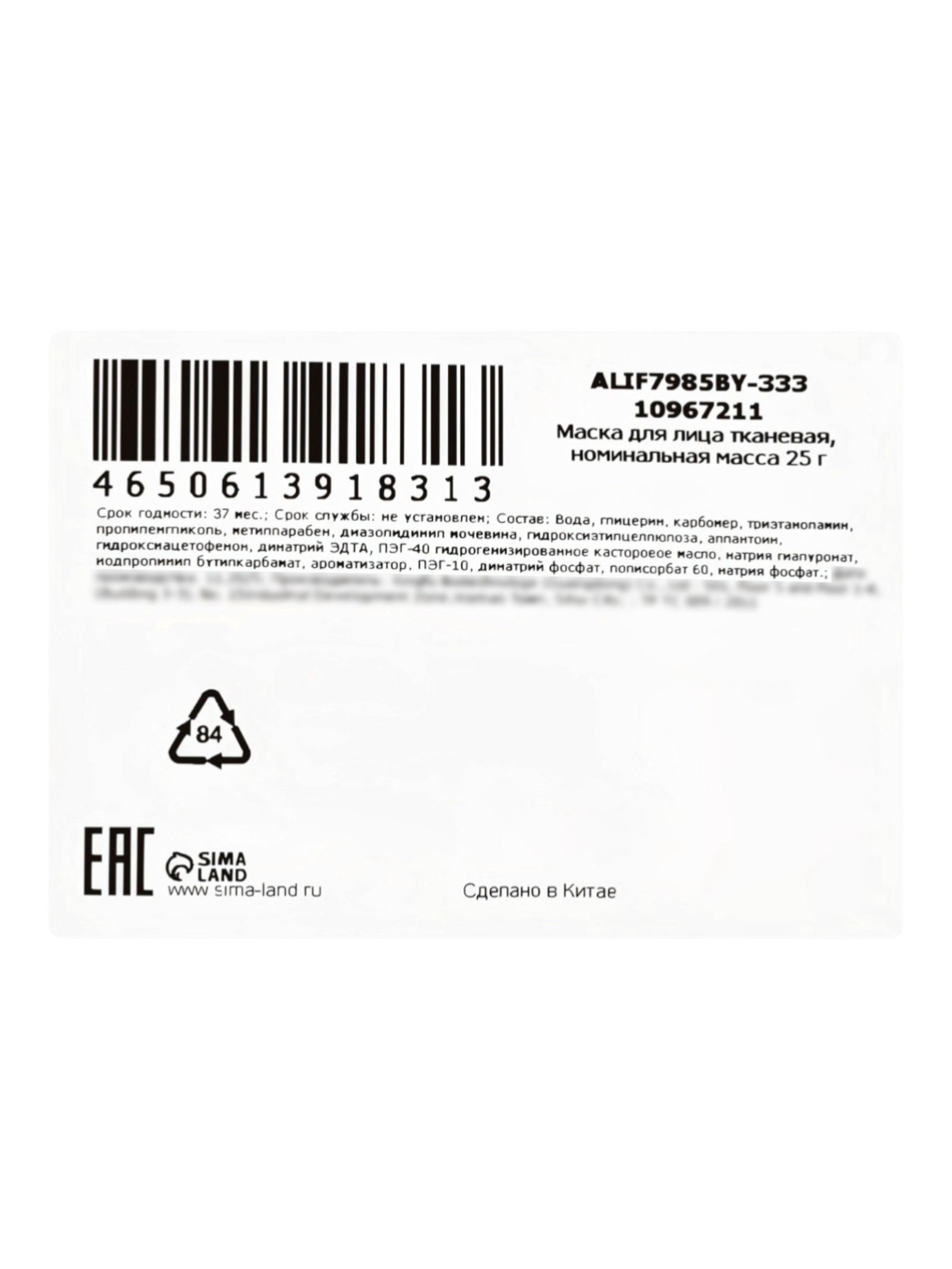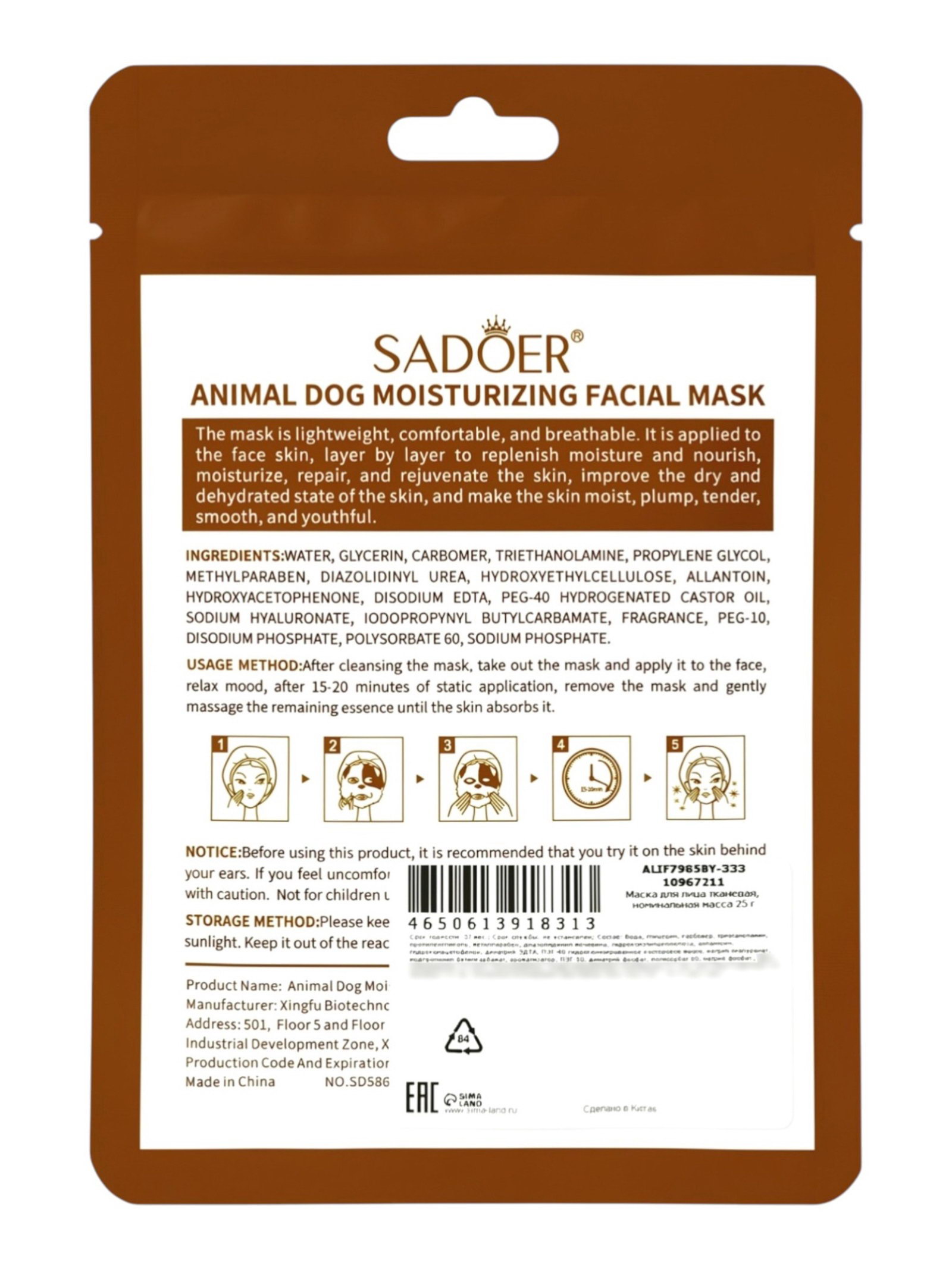 Тканевая маска, увлажняющая "Собачка", 25 мл, SADOER, Китай
