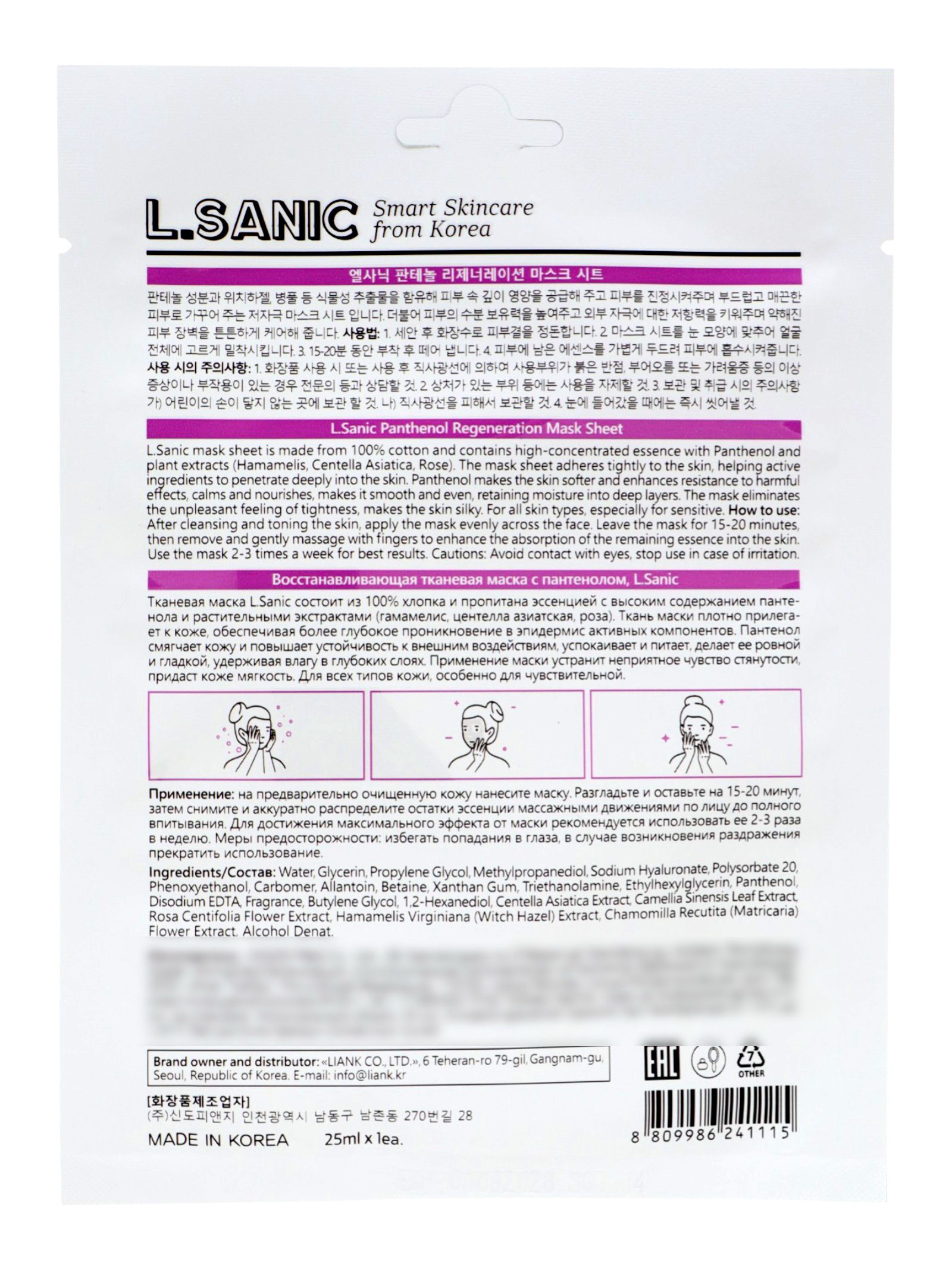 Маска для лица тканевая Panthenol Regeneration Mask Sheet, восстанавливающая, с пантенолом, 25 мл, L.SANIC, Южная Корея