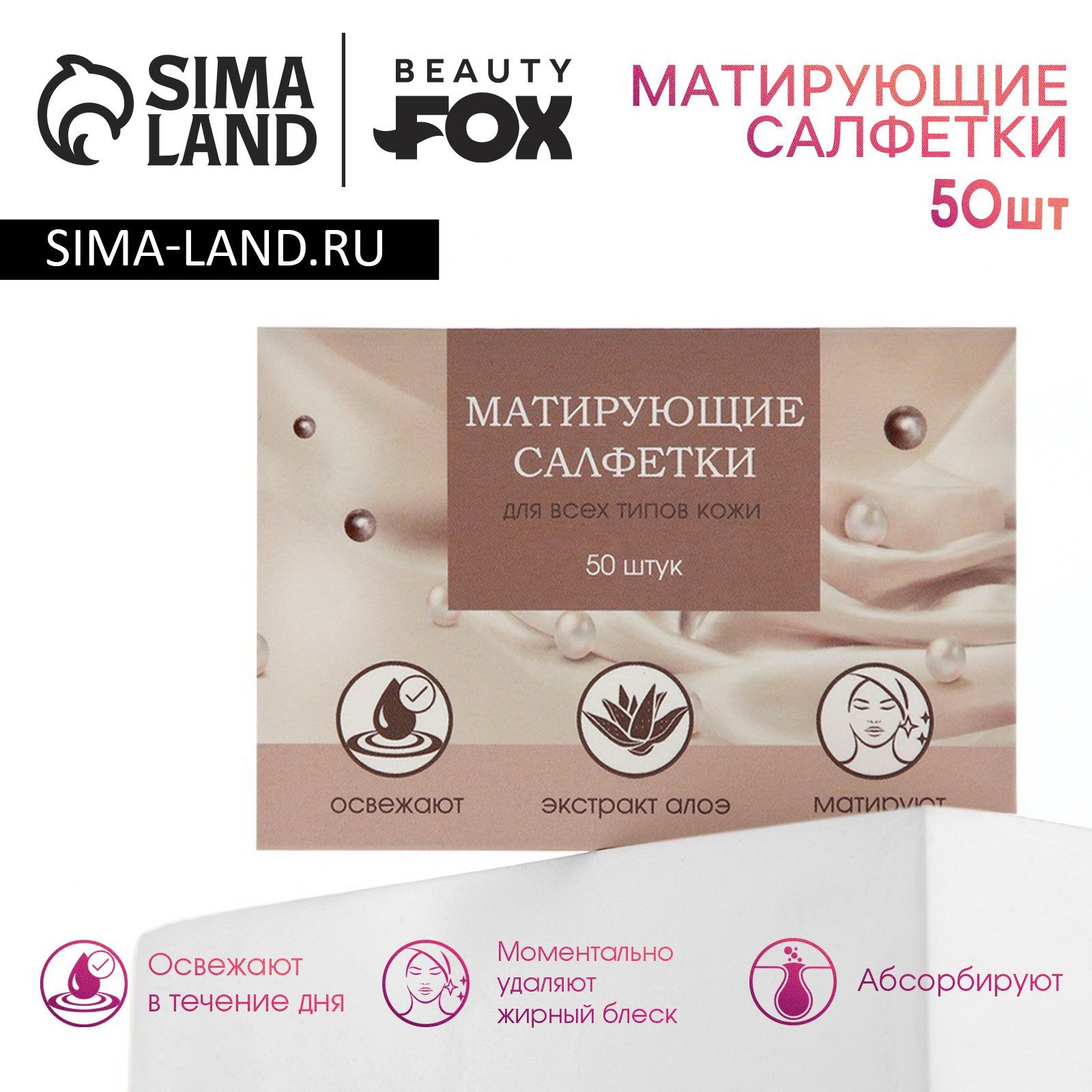 Матирующие салфетки для лица "Пудровый шик", 50 шт, 6x9x0.7 см., Beauty Fox, Китай