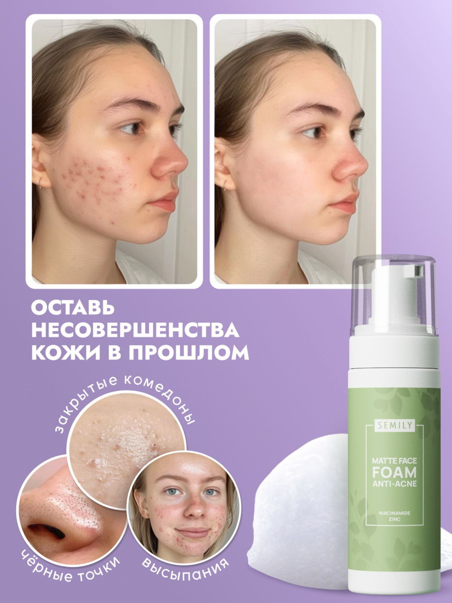Пенка для умывания матирующая против акне, для проблемной кожи, 150 мл, Semily, Россия