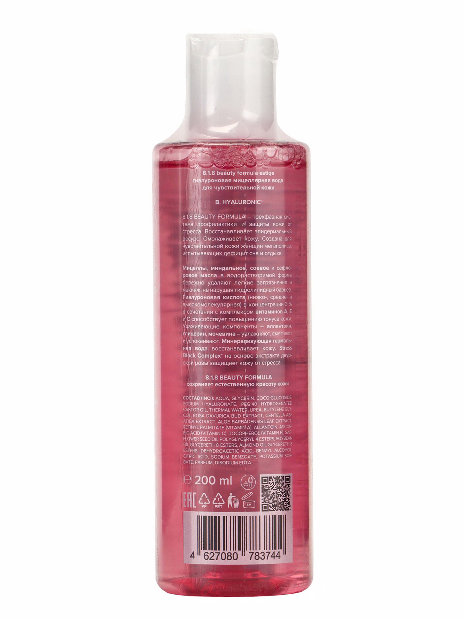 Мицеллярная вода 818 beauty formula, гиалуроновая, для чувствительной кожи, 200 мл, 8.1.8 beauty formula, Россия