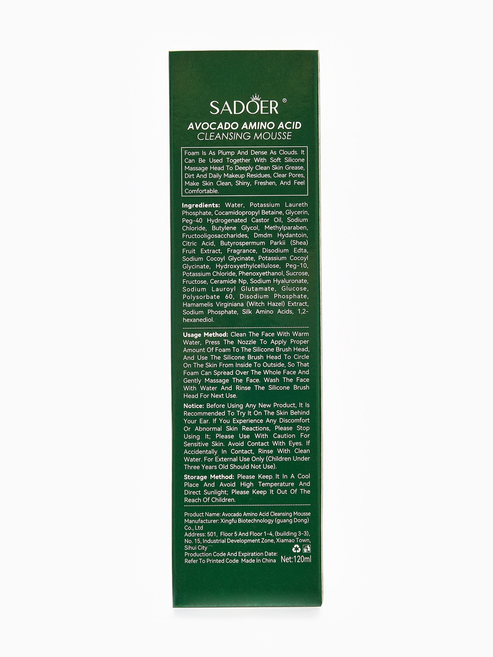 Новогодняя пенка для умывания авокадо, 120 мл, SADOER, Китай