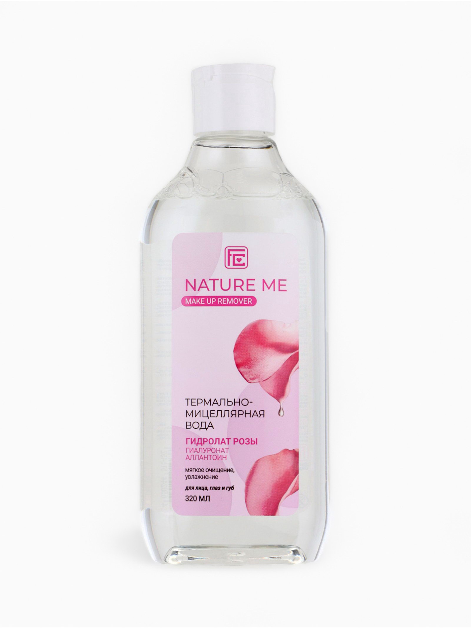 Размер упаковки: 6.5 x 4.5 x 18 см. tnved: 3304990000 Температурное ограничение: Нет Температурное ограничение: Нет Область применения: Для лица Вид: Мицеллярные средства Тип кожи: Для всех типов Термально-мицеллярная вода NATURE ME с гидролатом розы и гиалуроновой кислотой мягко и эффективно удаляет макияж с лица, глаз и губ, не нарушая естественный баланс кожи. Средство подходит для чувствительной кожи и может использоваться для шеи и зоны декольте. Активные компоненты обеспечивают бережное очищение, увлажнение и восстановление кожи: гидролат розы питает и насыщает кожу витаминами и микроэлементами, гиалуронат поддерживает влагу и упругость, а аллантоин успокаивает и снижает раздражение. В состав входят натуральные компоненты, поэтому возможен естественный осадок. Активные ингредиенты: