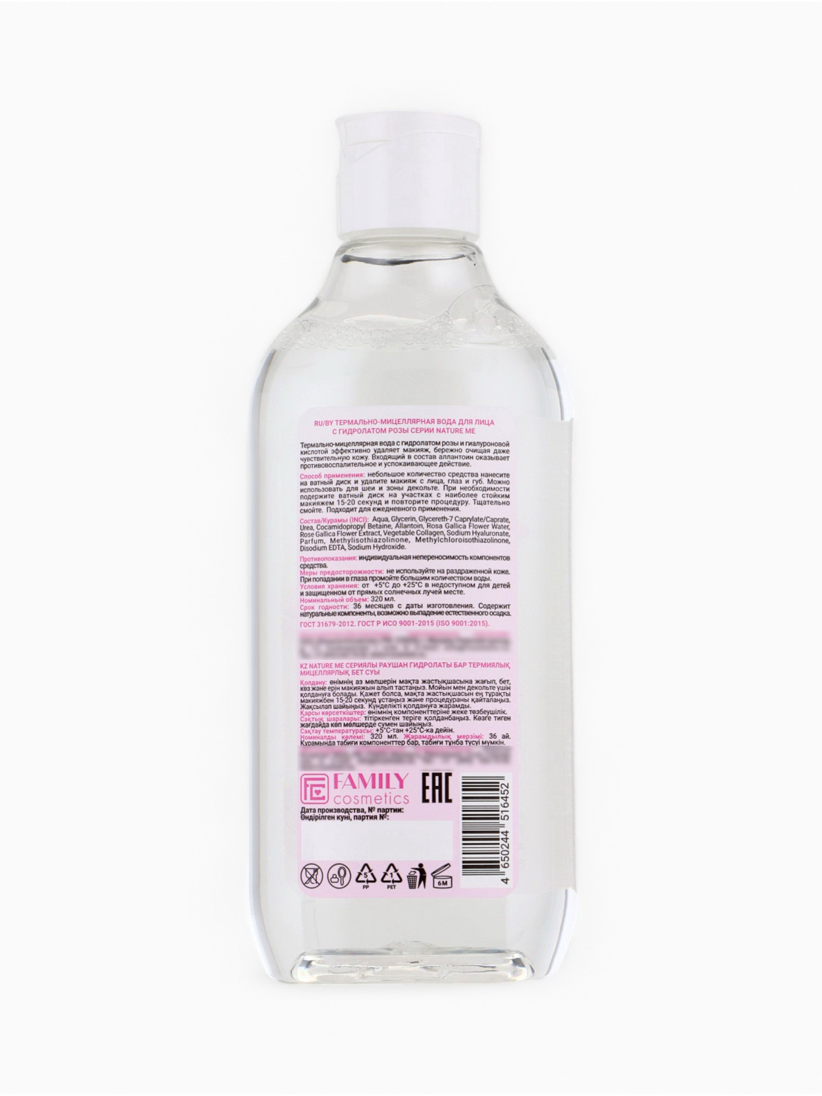 Термально-мицеллярная вода для лица NATURE ME с гидролатом розы, 320 мл, Family Cosmetics, Россия