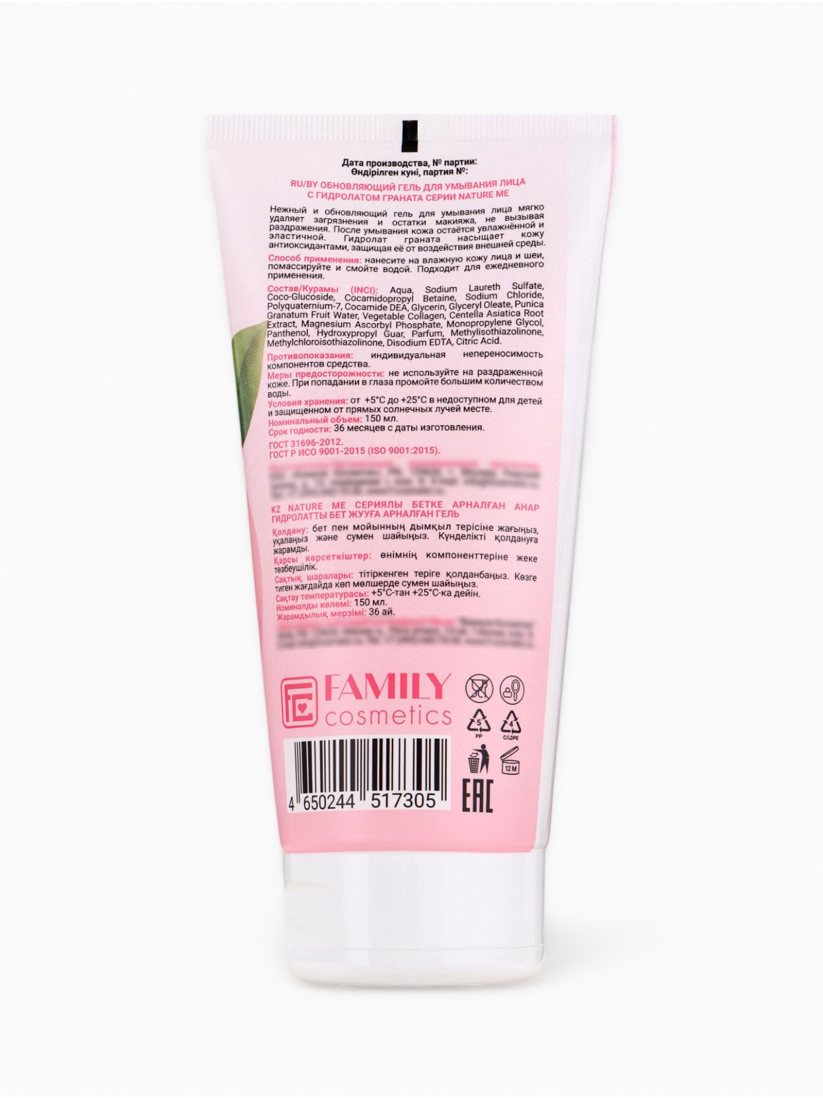Гель для умывания лица обновляющий NATURE ME с гидролатом граната, 150 мл, Family Cosmetics, Россия