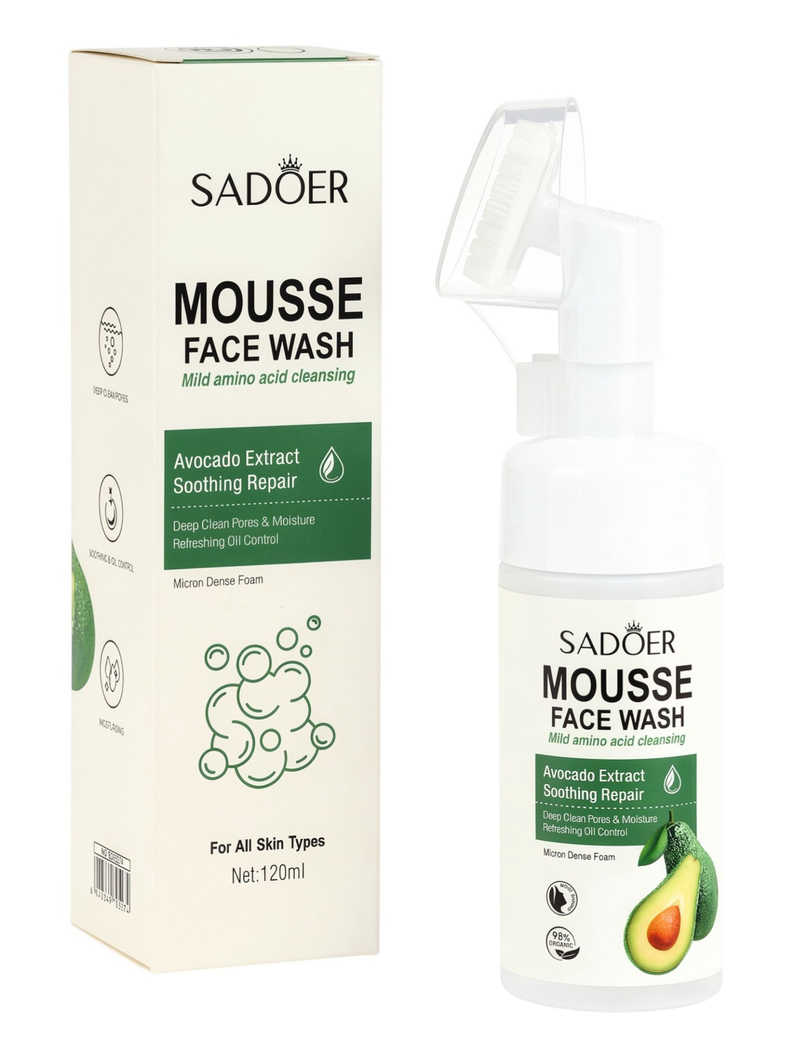 Пенка для умывания с щеткой, с щеточкой с экстрактом авокадо, 120 мл, SADOER, Китай