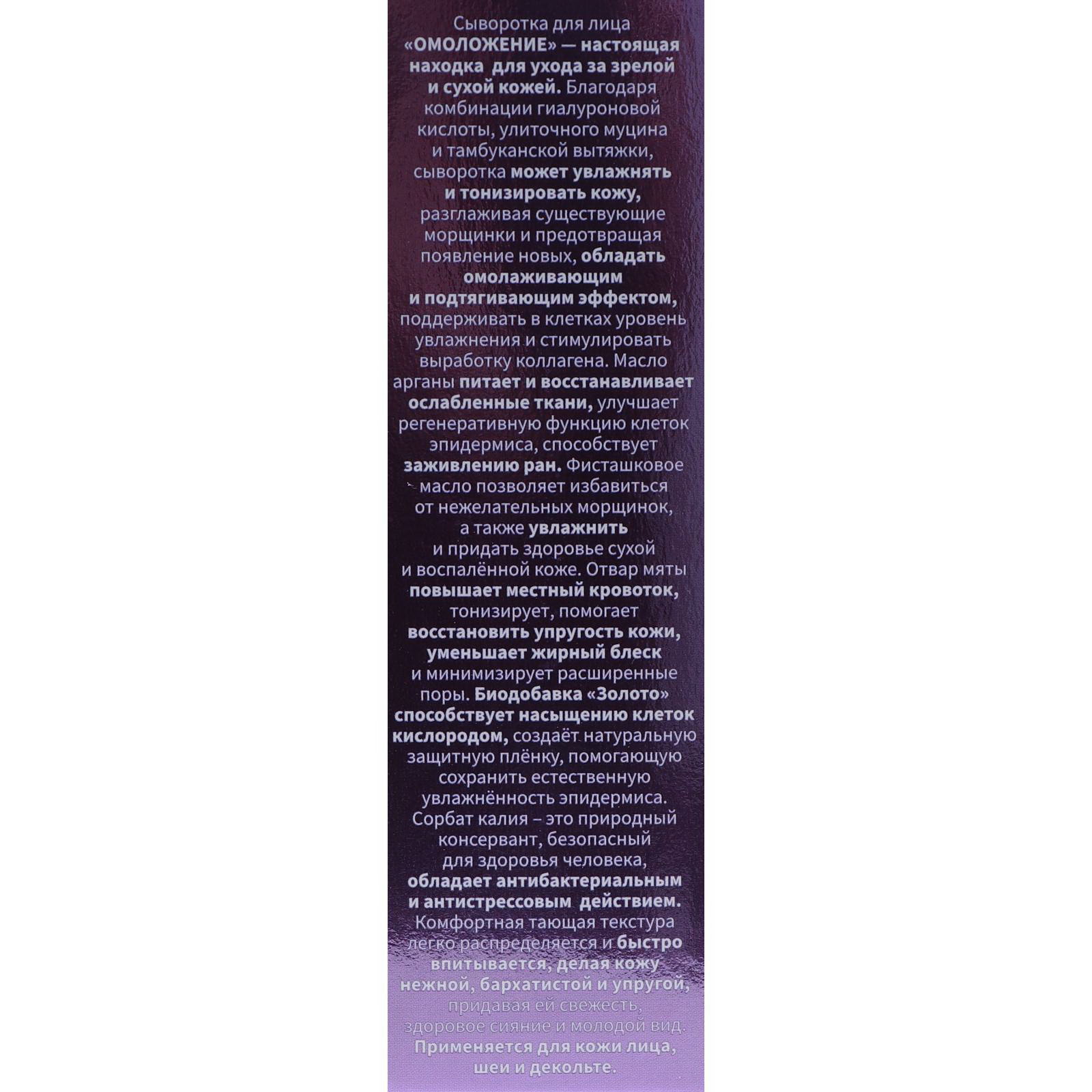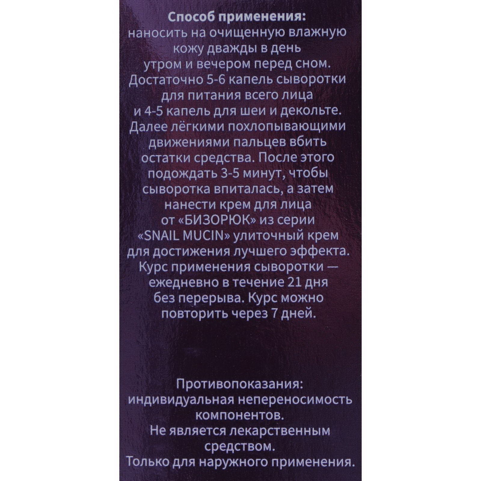Сыворотка для лица "Омоложение", с муцином улитки и гиалуроновой кислотой, 50 мл, Бизорюк, Россия