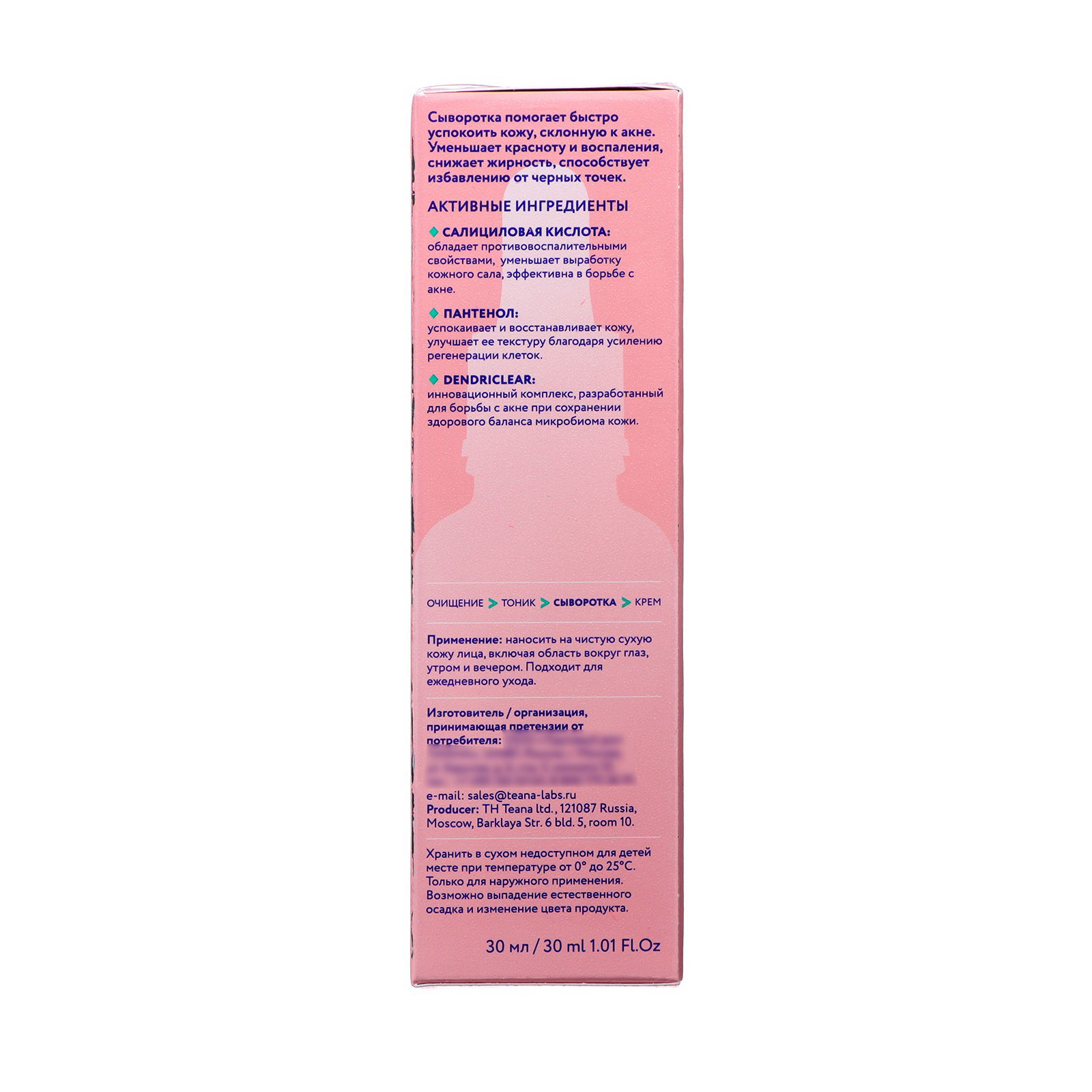 Сыворотка для лица SOS-терапия акне, 30 мл, TEANA, Россия