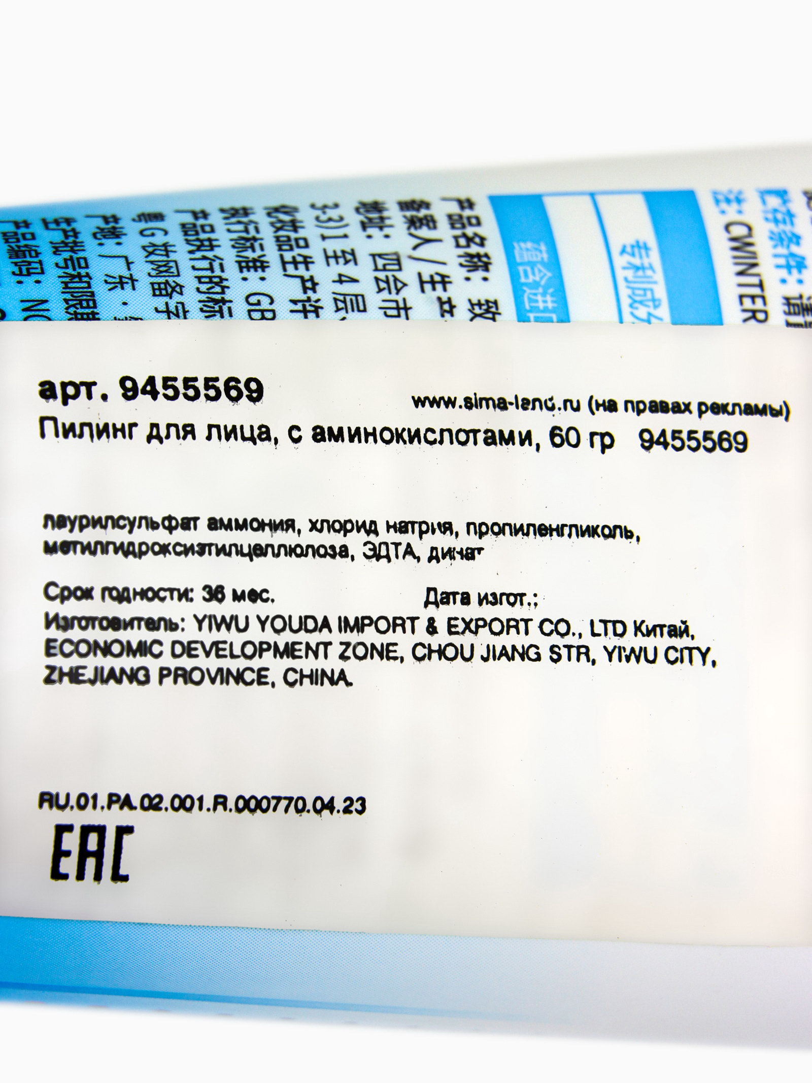 Пилинг для лица, с аминокислотами, 60 г, 4x3x14 см., Китай